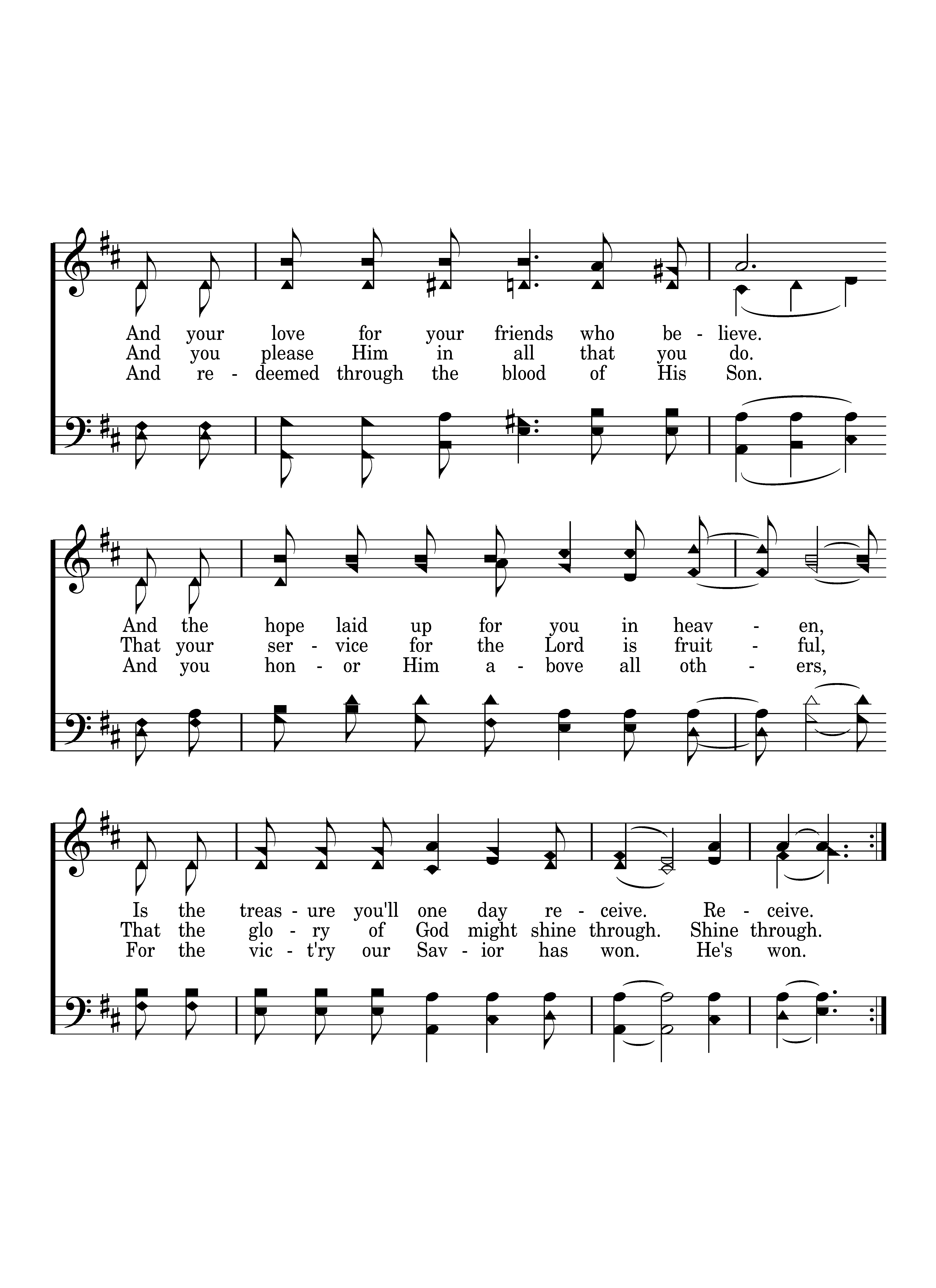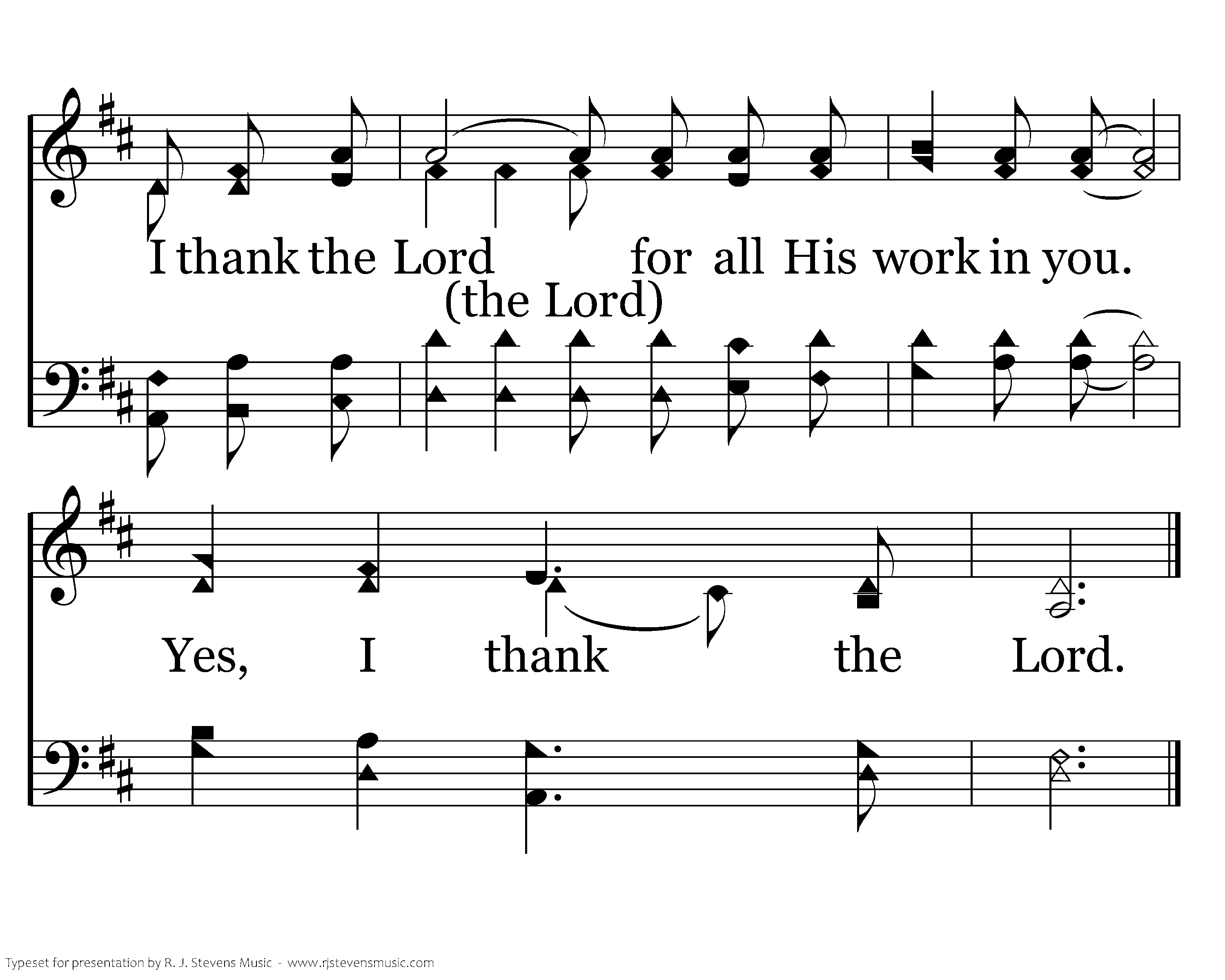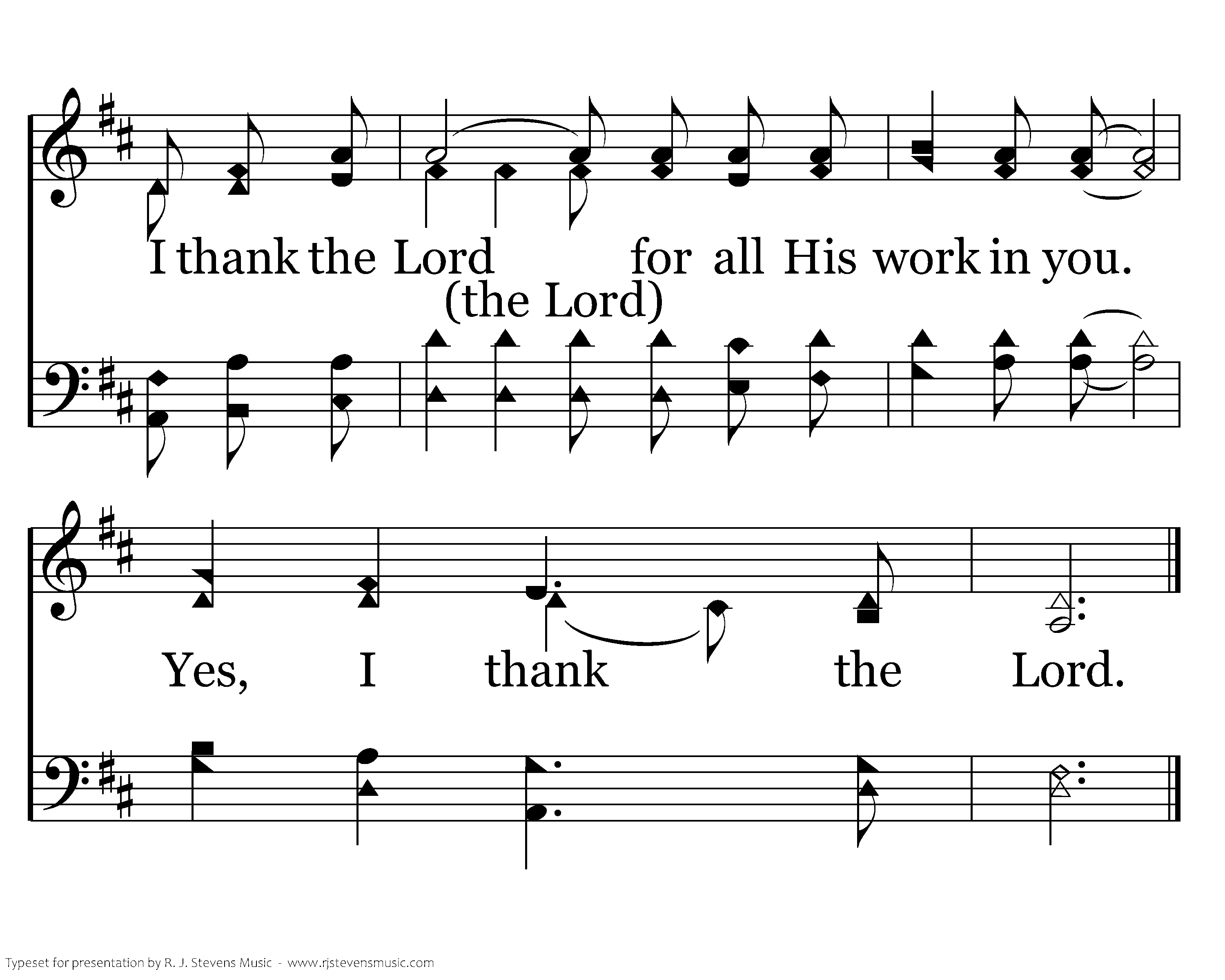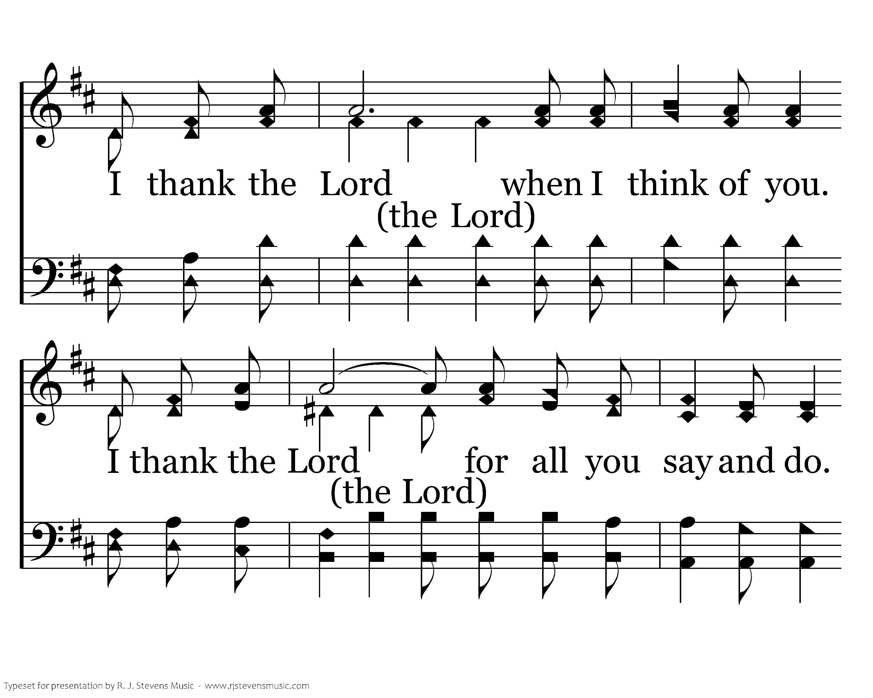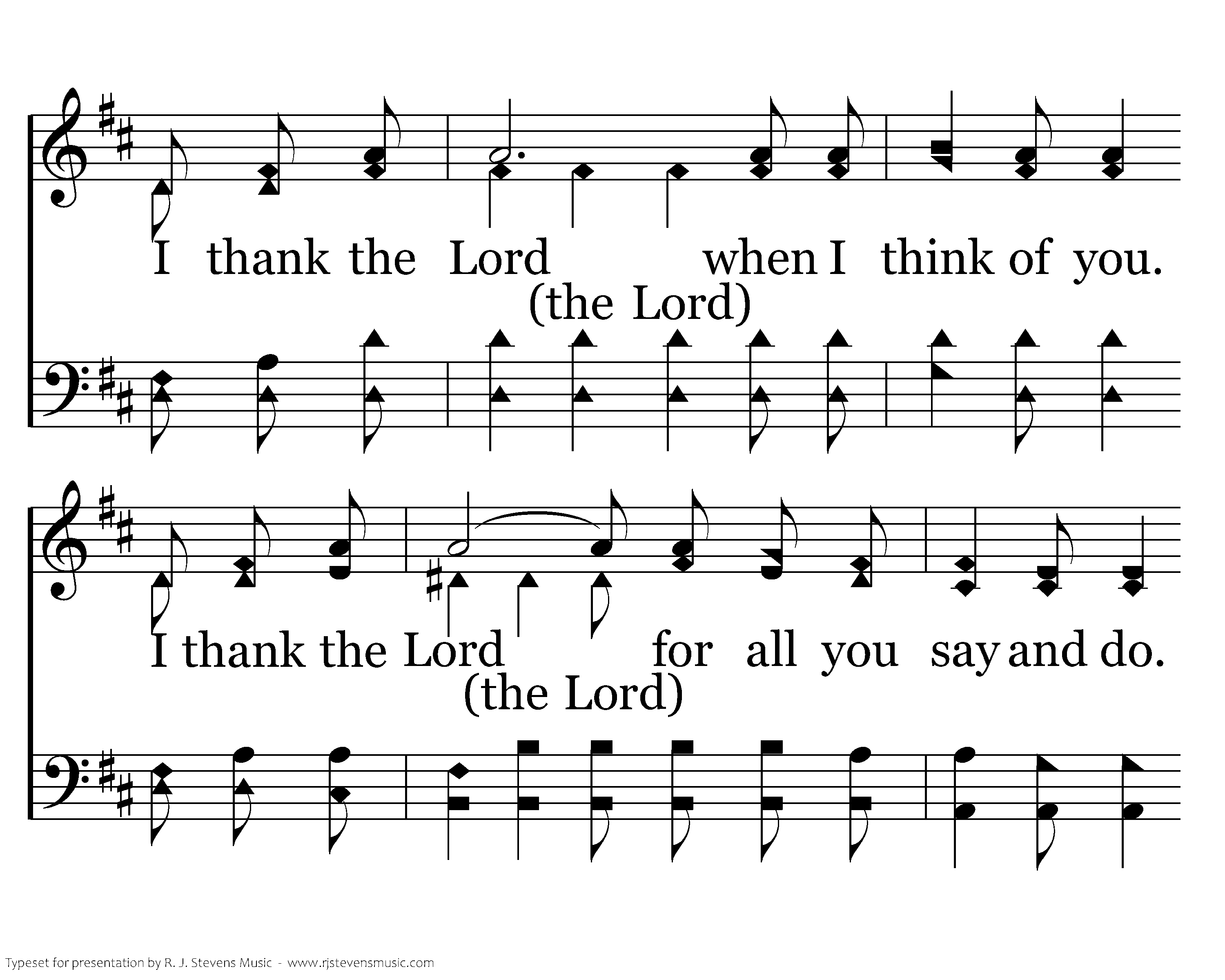 I thank the Lord when I think of you. I thank the Lord for all you say and do. I thank the Lord for all His work in you. Yes, I thank the Lord. I know of your faith in Christ Jesus, And your love for all your friends who believe. And the hope laid up for you in heaven, Is the treasure you'll one day receive. Receive. I thank the Lord when I think of you. I thank the Lord for all you say and do. I thank the Lord for all His work in you. Yes, I thank the Lord.