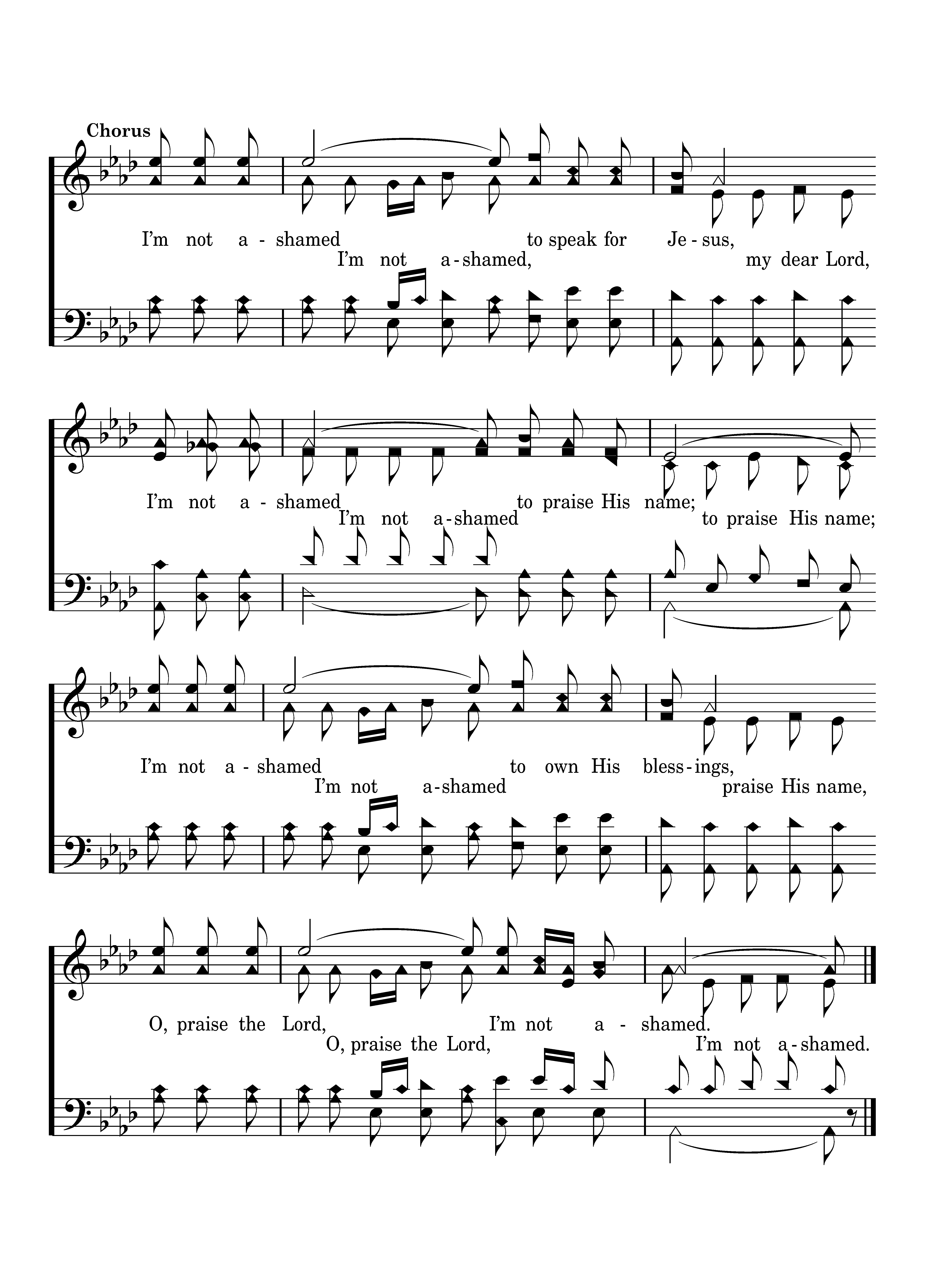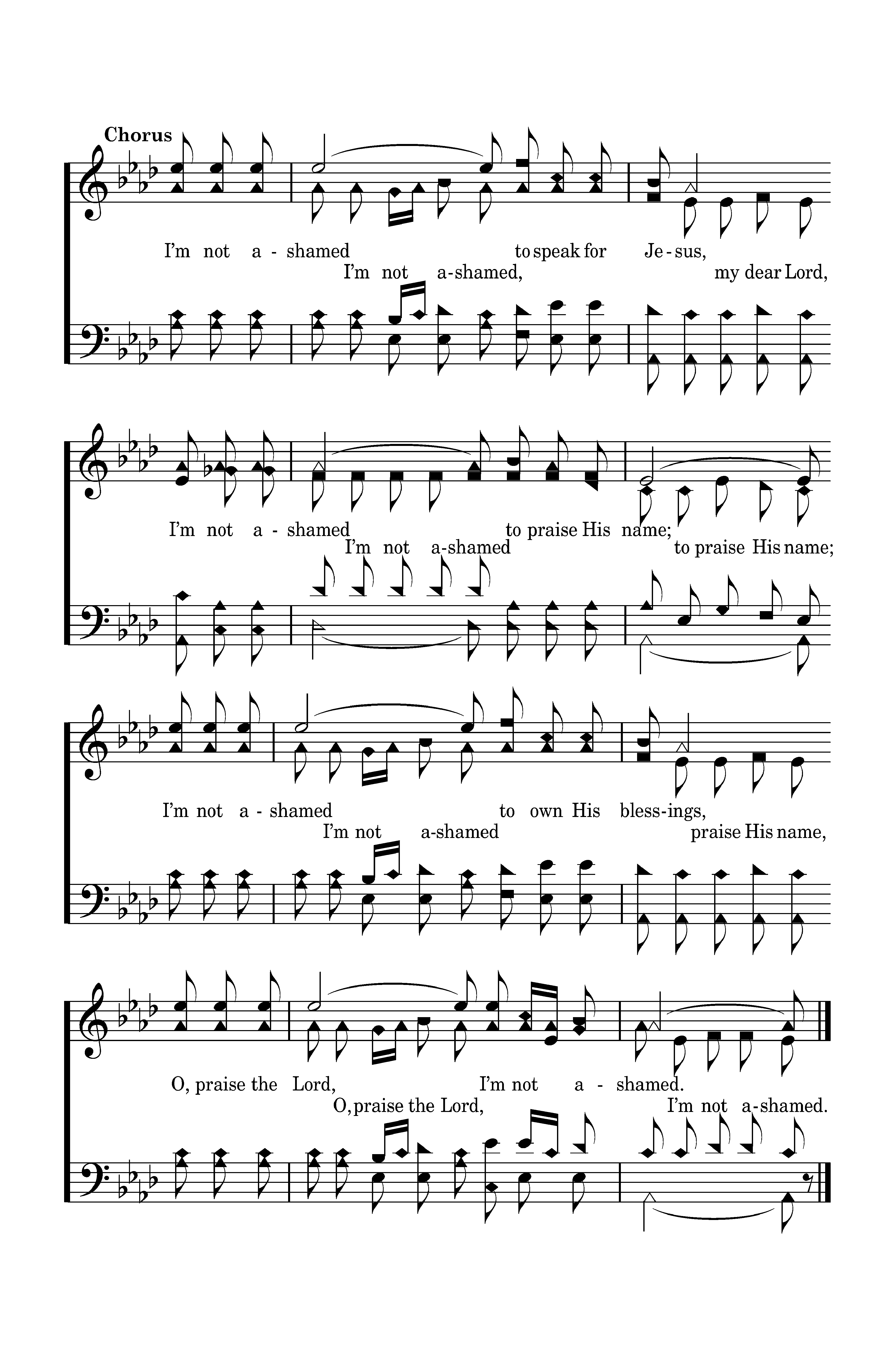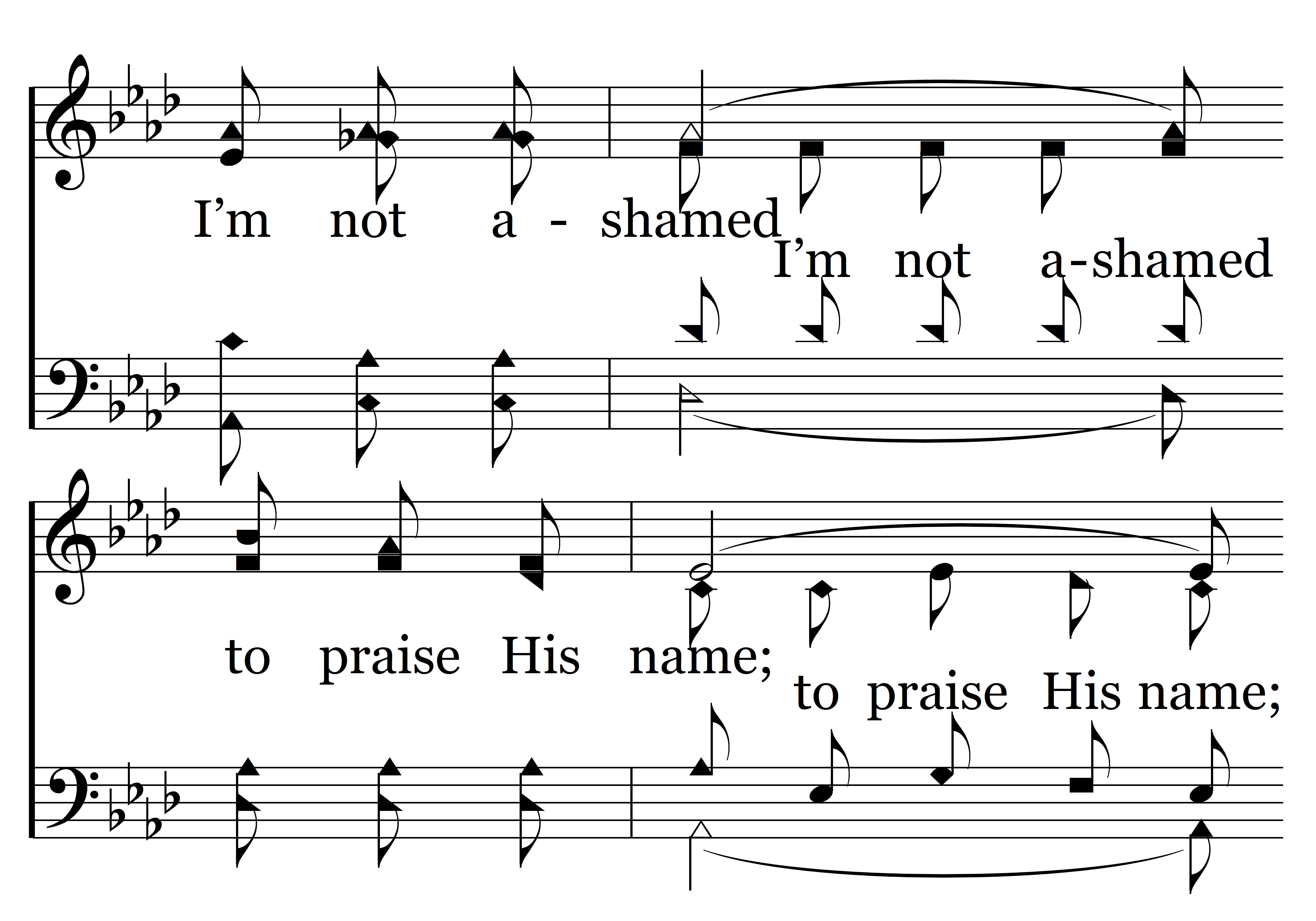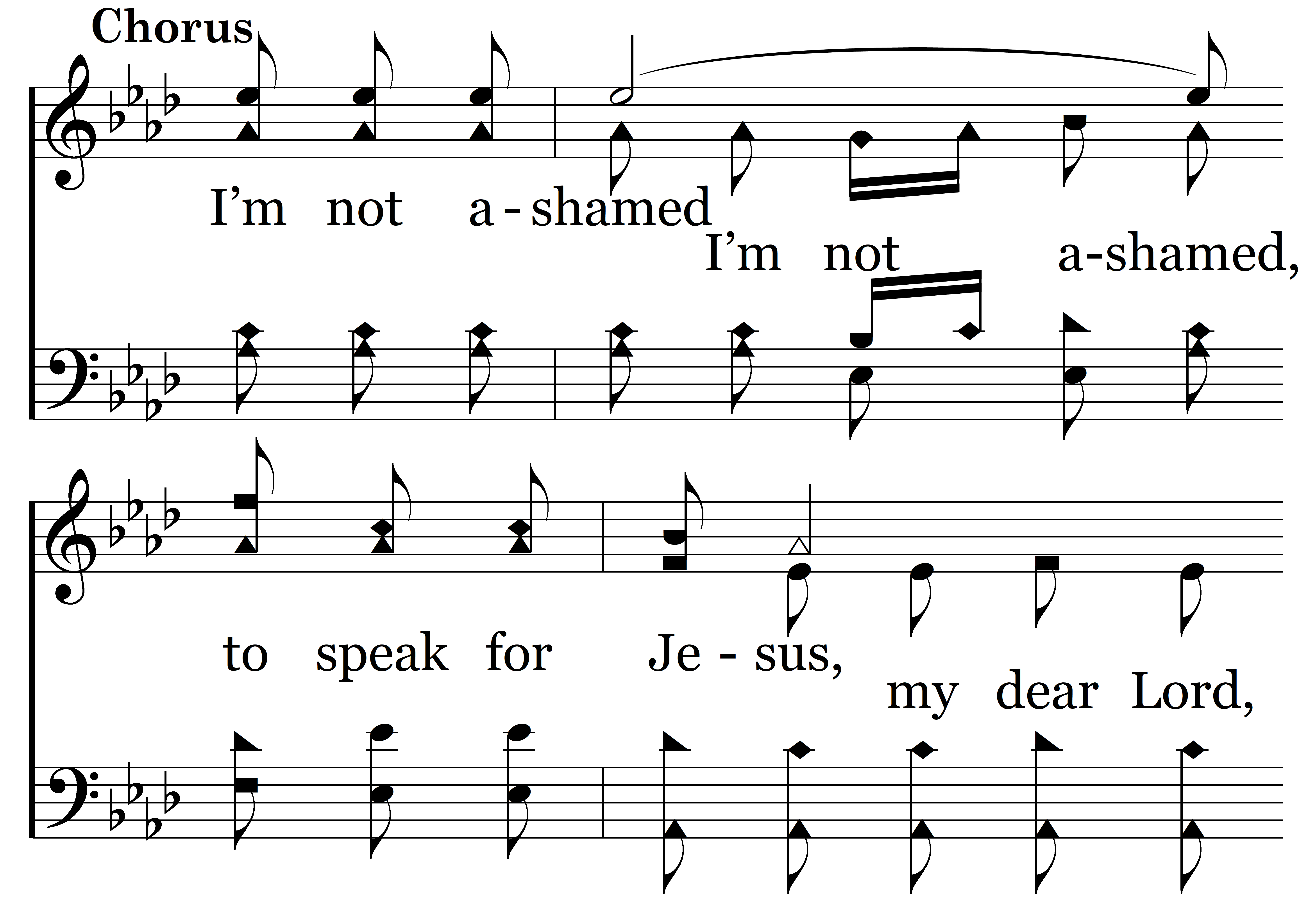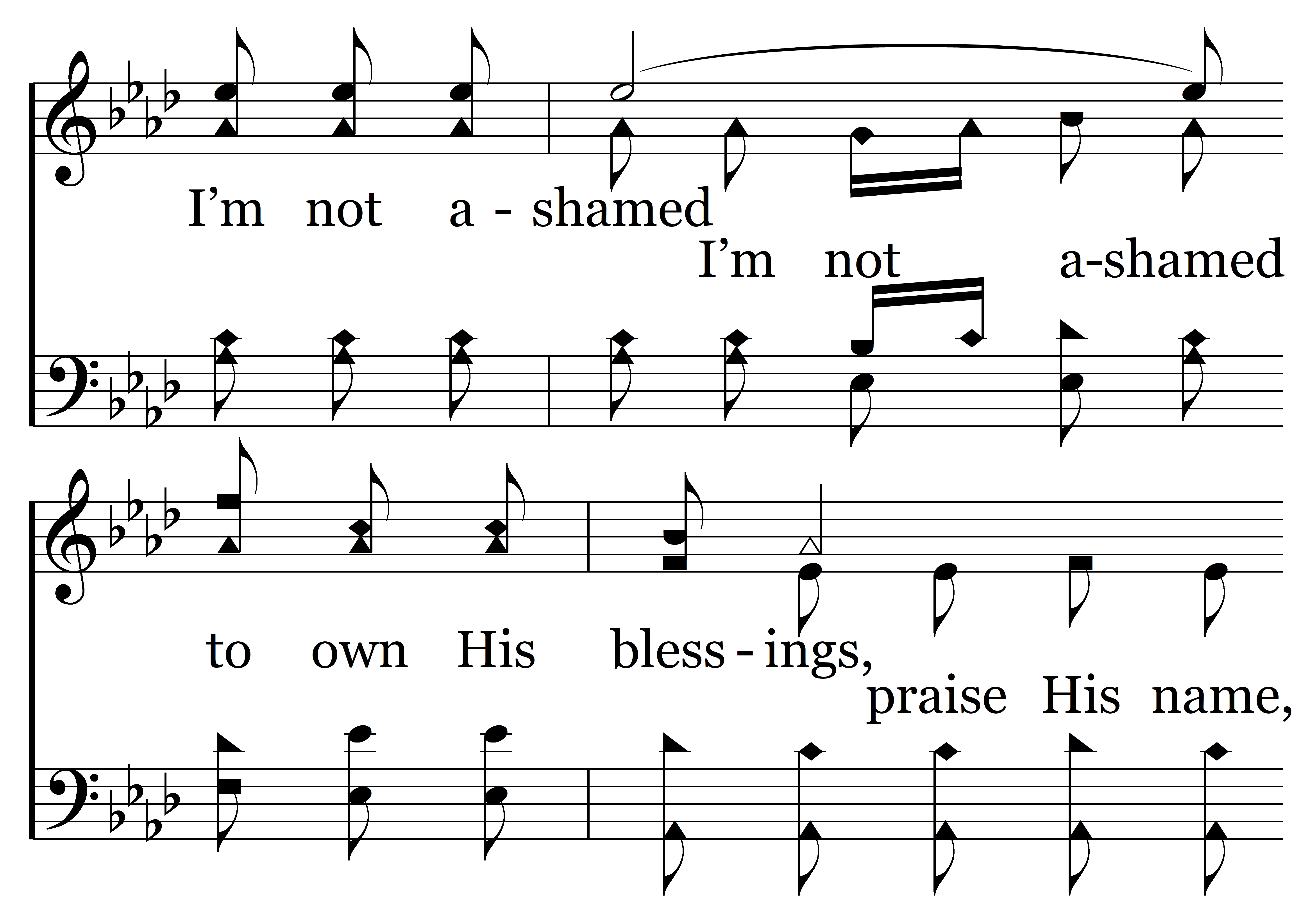 I’m not ashamed to speak for Jesus, I’m not ashamed to praise His name; I’m not ashamed to own His blessings, O, praise the Lord, I’m not ashamed. (I’m not ashamed, my dear Lord, I’m not ashamed to praise His name, to praise His name; I’m not ashamed to own His blessings, praise His name, O, praise the Lord, I’m not ashamed. I’m not ashamed.)