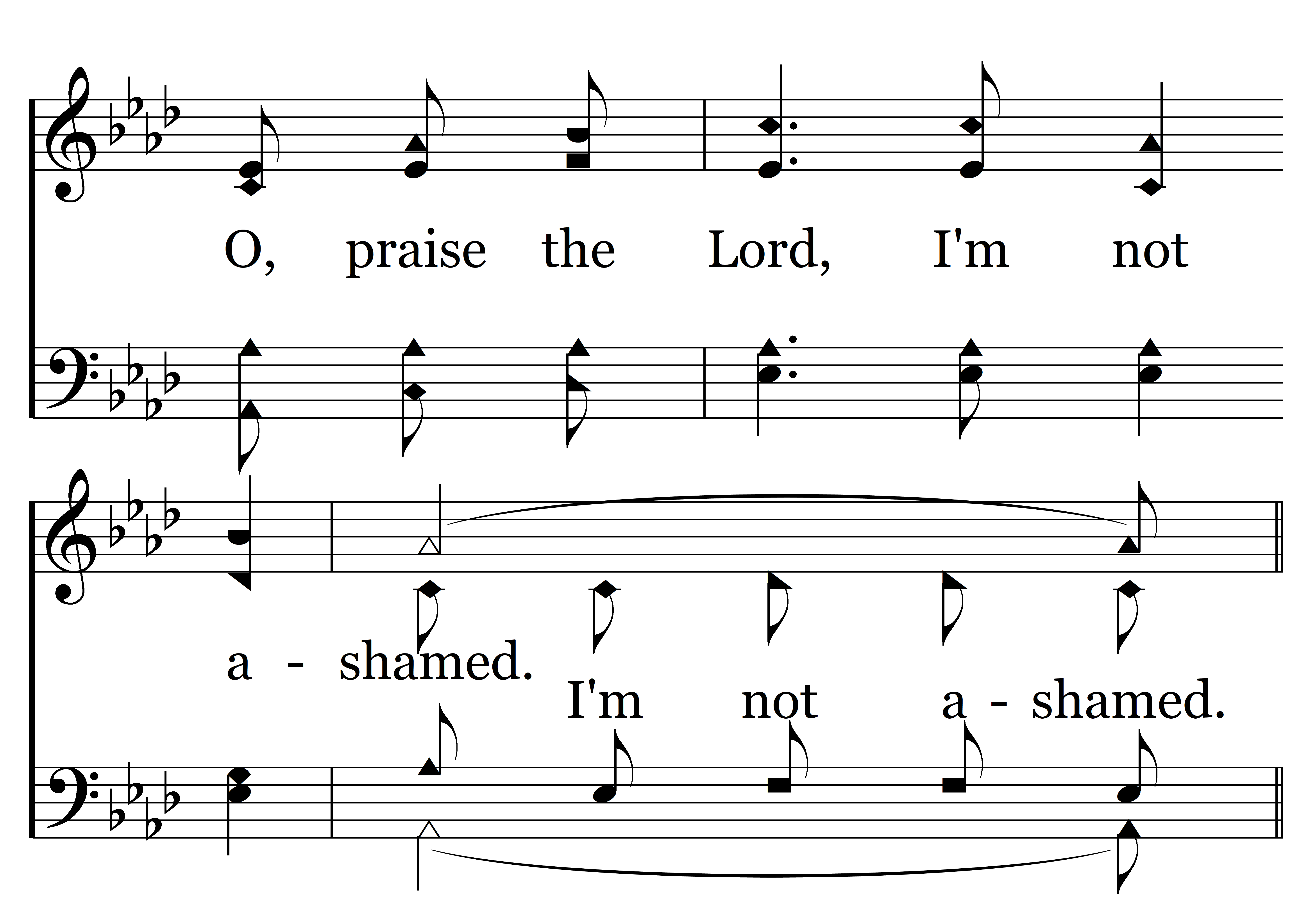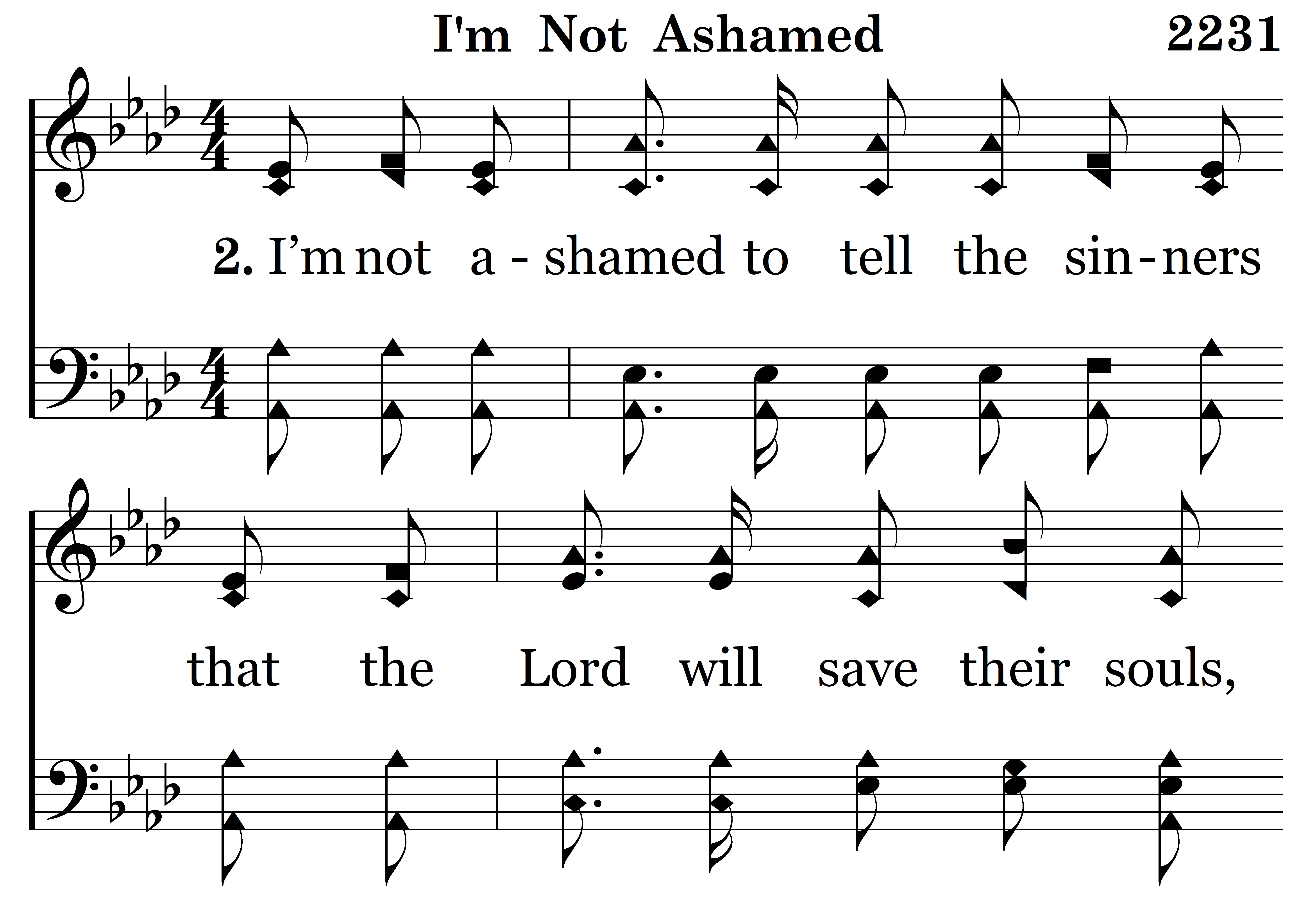 I’m not ashamed to tell the sinners that the Lord will save their souls, If they will only come obeying He will cleanse and make them whole; And He’ll prepare for them an entrance to that everlasting fold, O, praise the Lord, I’m not ashamed.