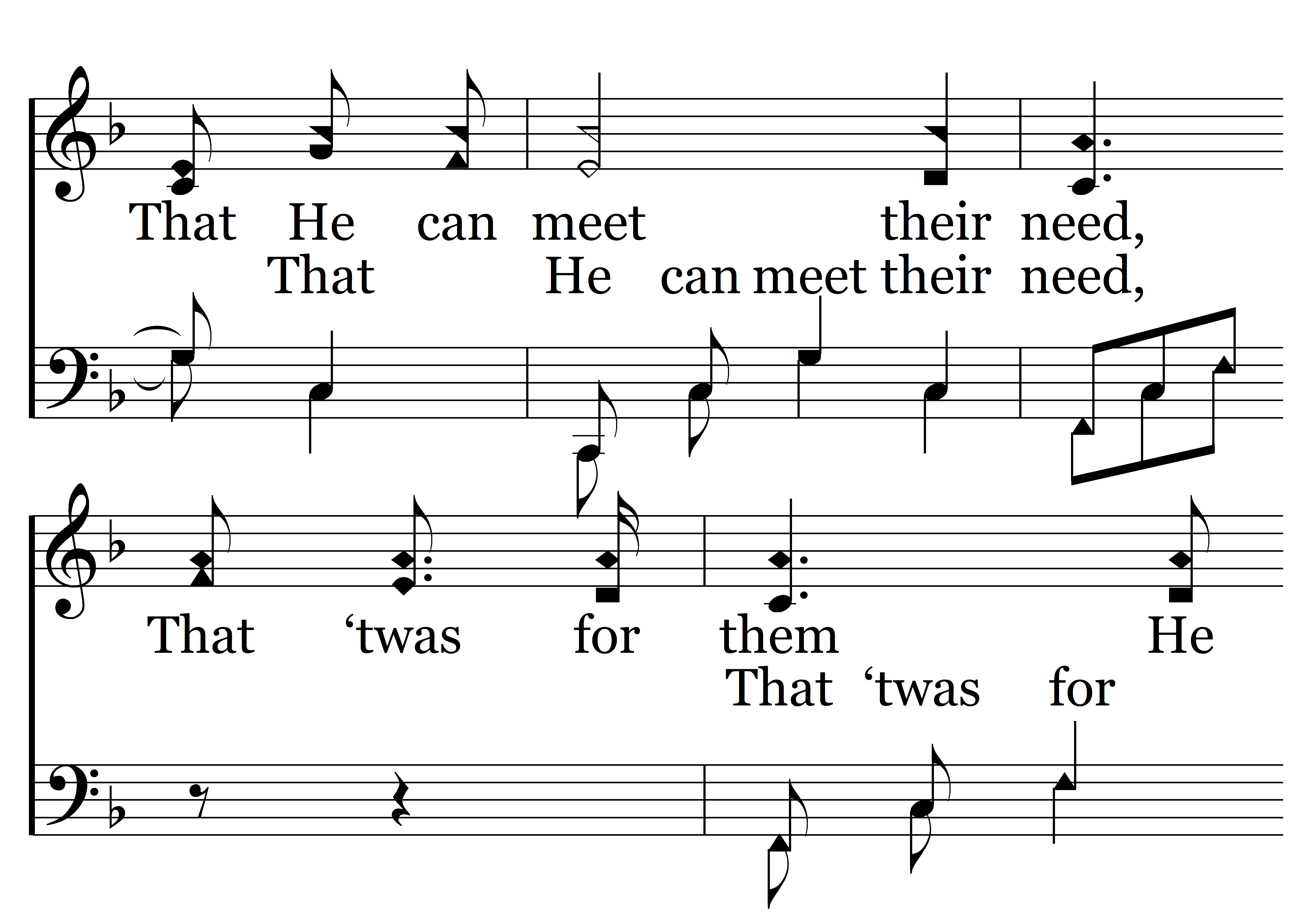 Go forth and tell to those around That He can meet their need, That ‘twas for them He came to earth, On Calvary to bleed.