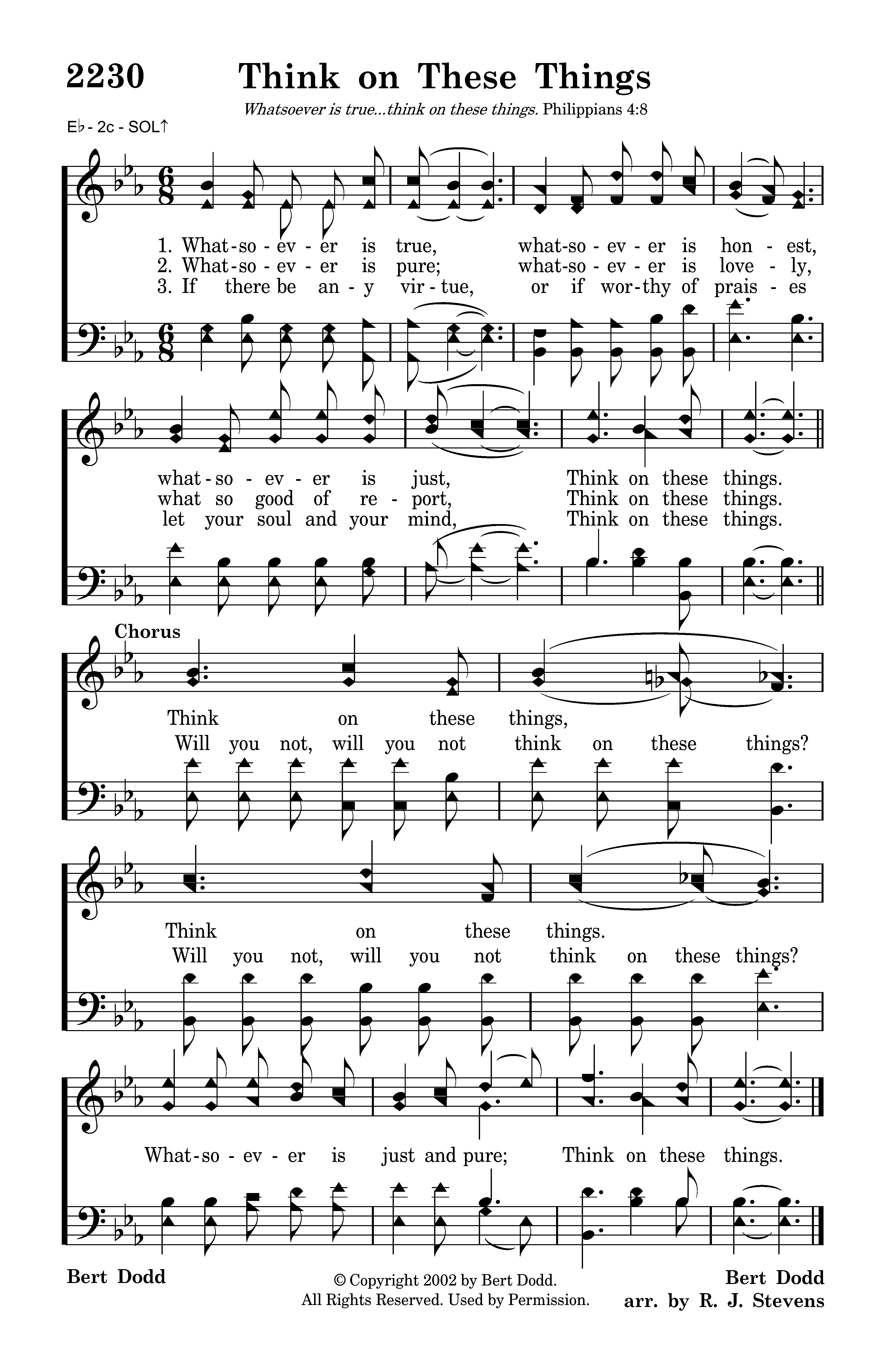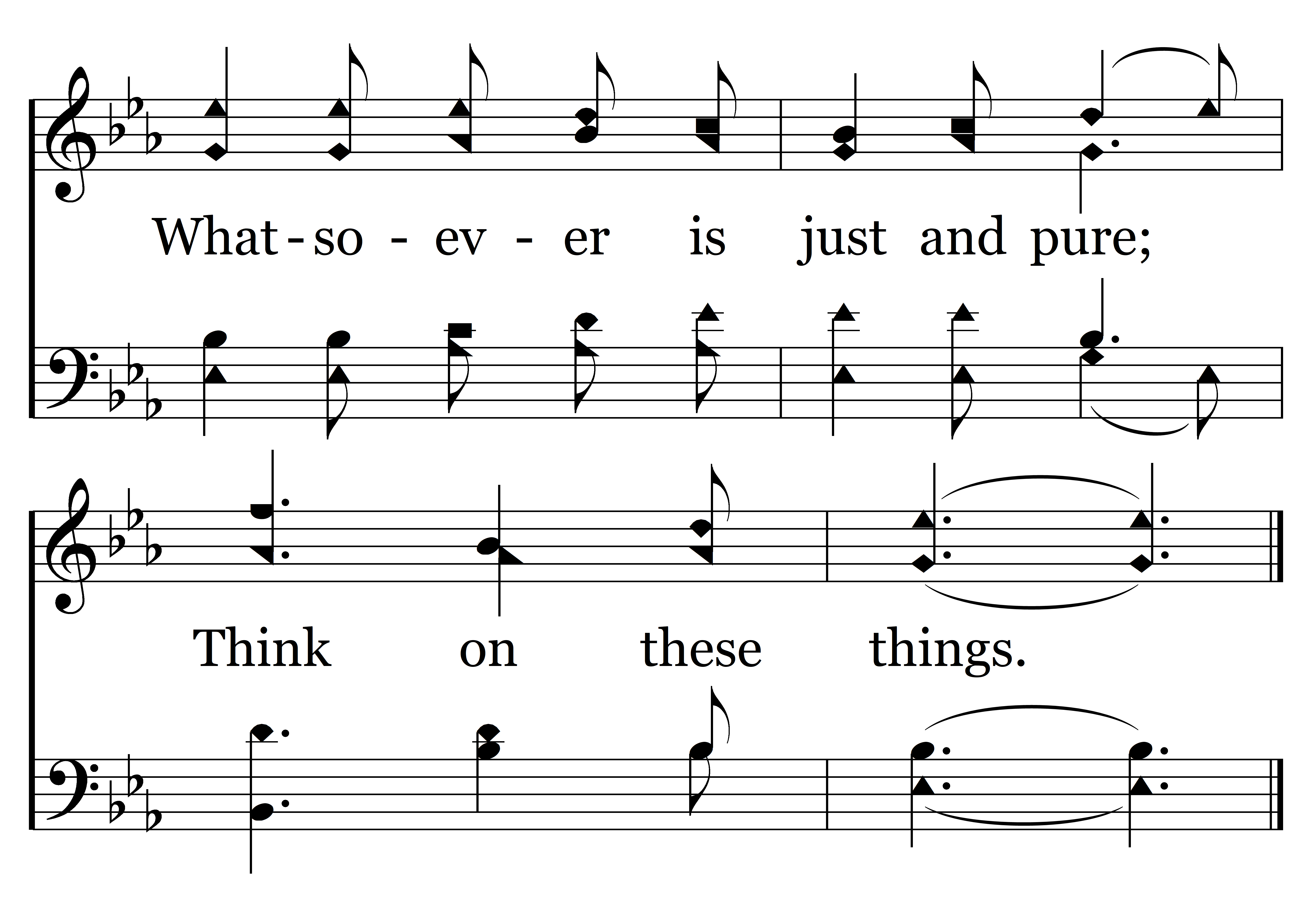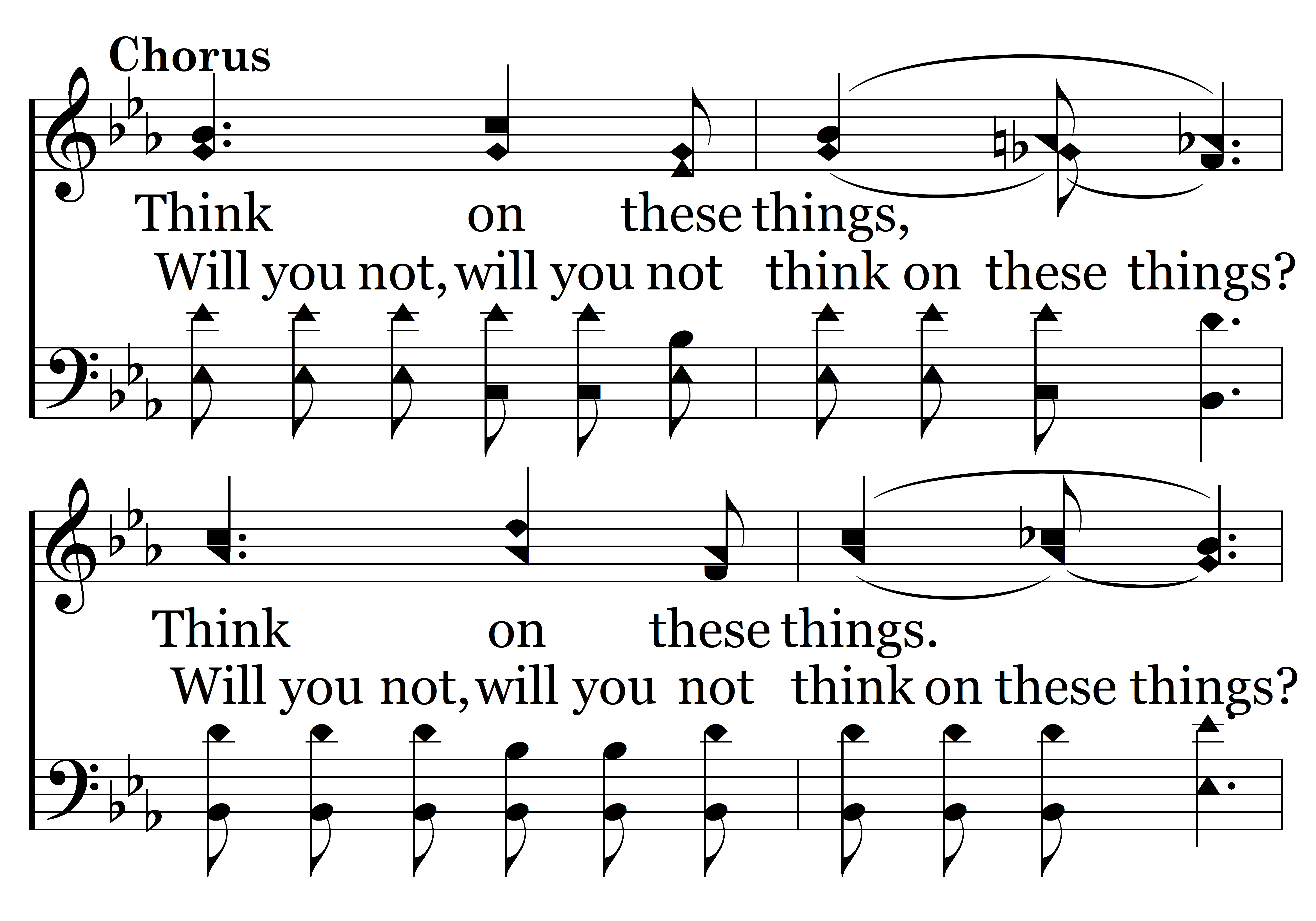 Think on these things, (Will you not, will you not think on these things?) Think on these things. (Will you not, will you not think on these things?) Whatsoever is just and pure; Think on these things.