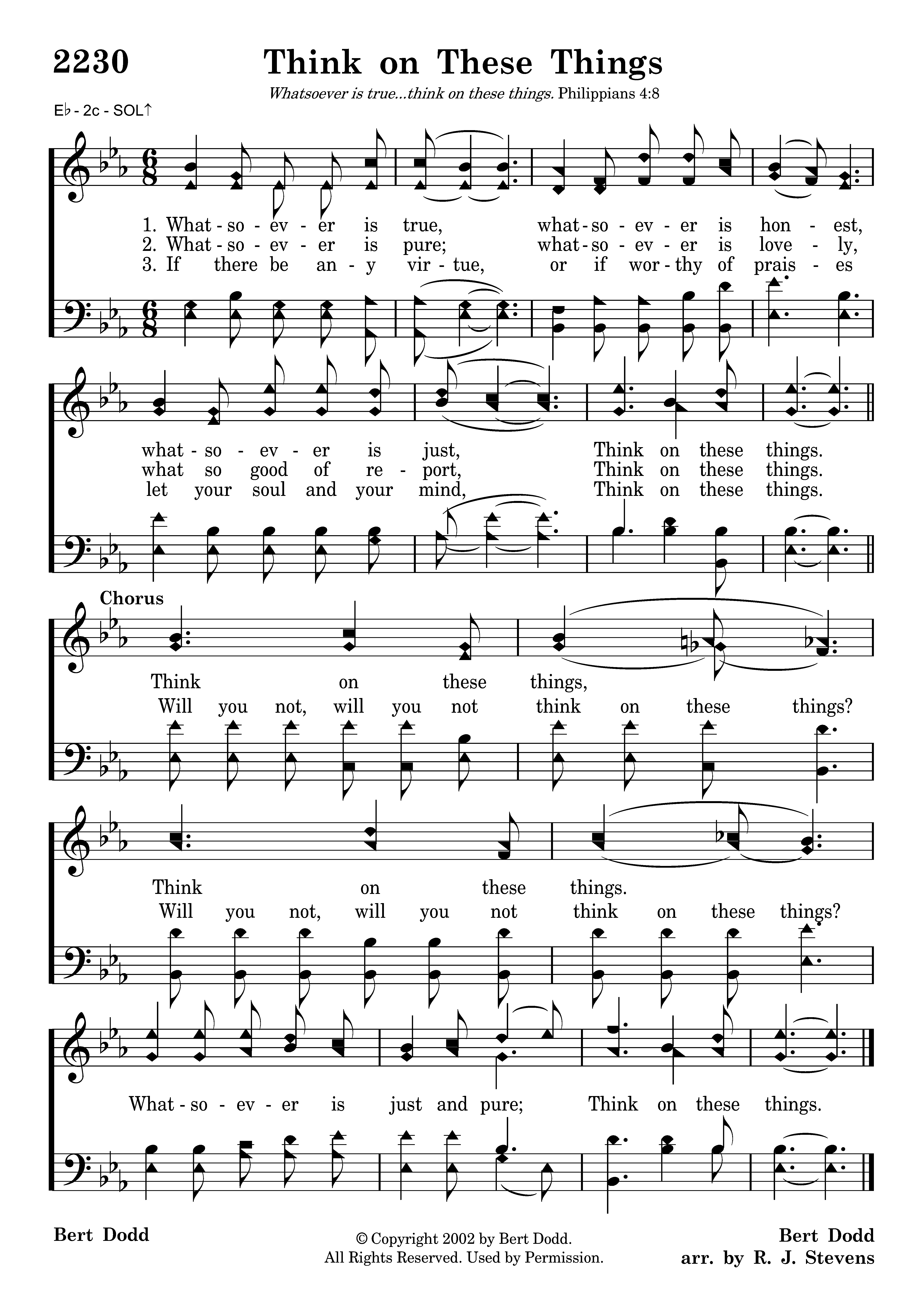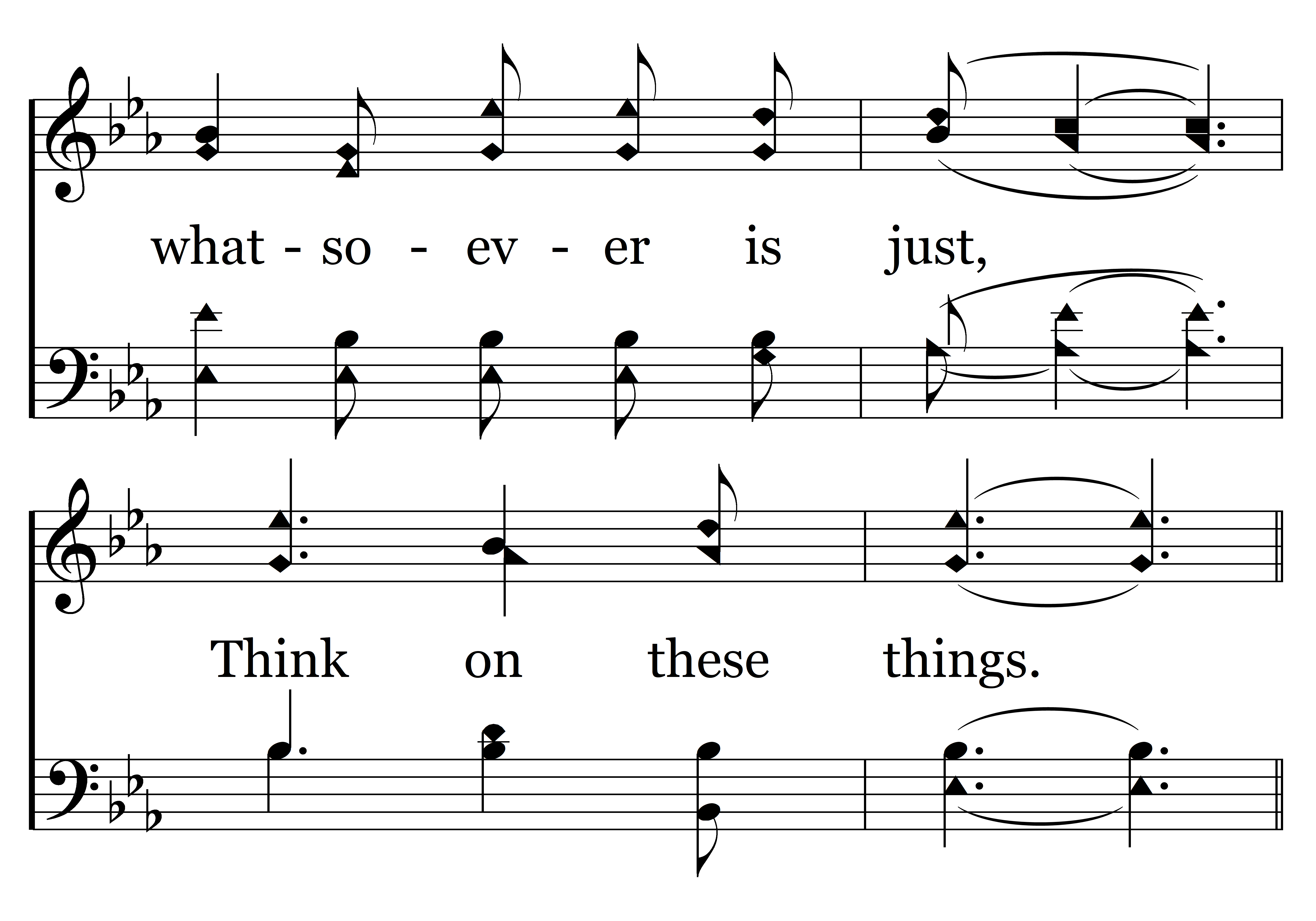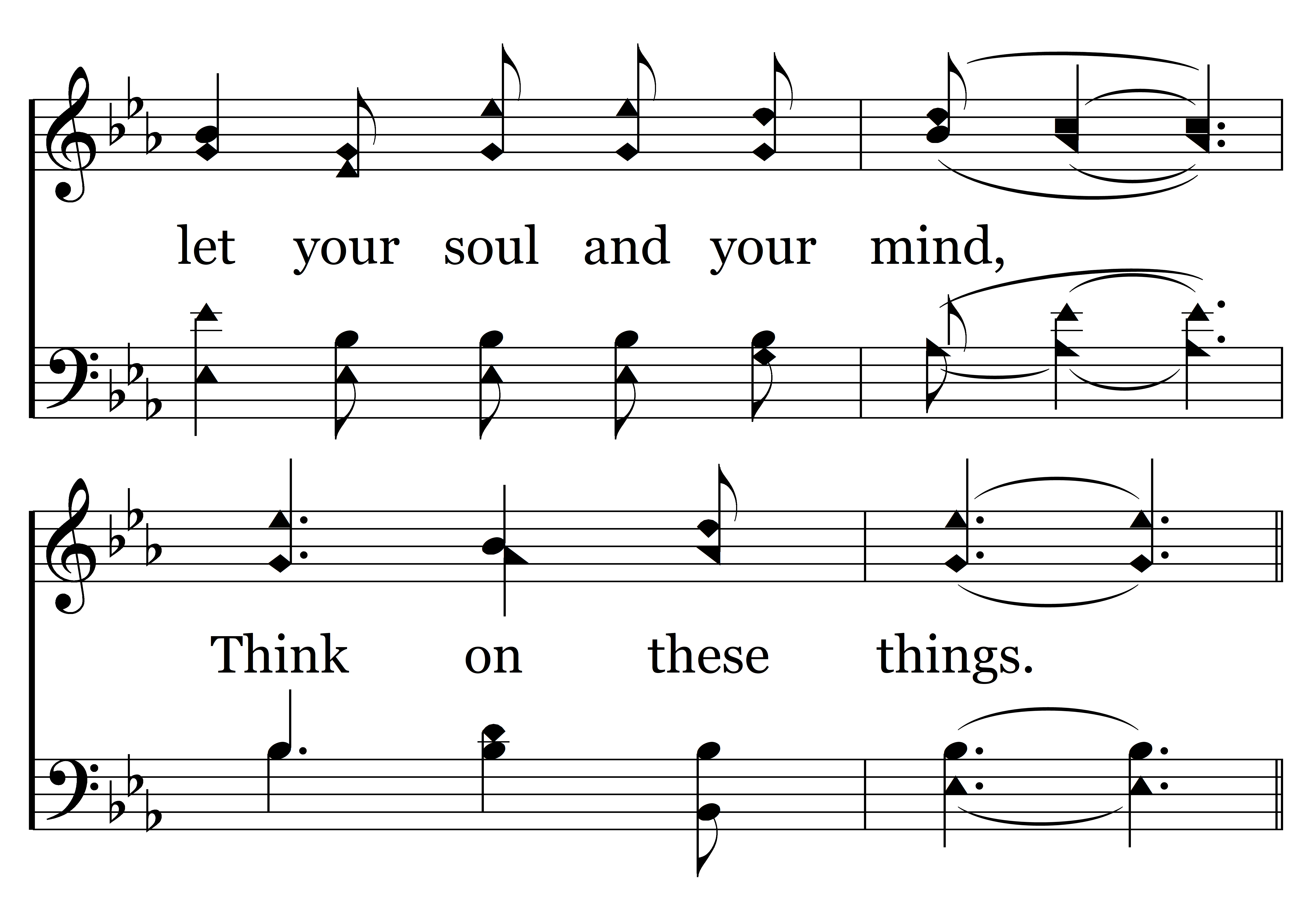 Think on these things, (Will you not, will you not think on these things?) Think on these things. (Will you not, will you not think on these things?) Whatsoever is just and pure; Think on these things.