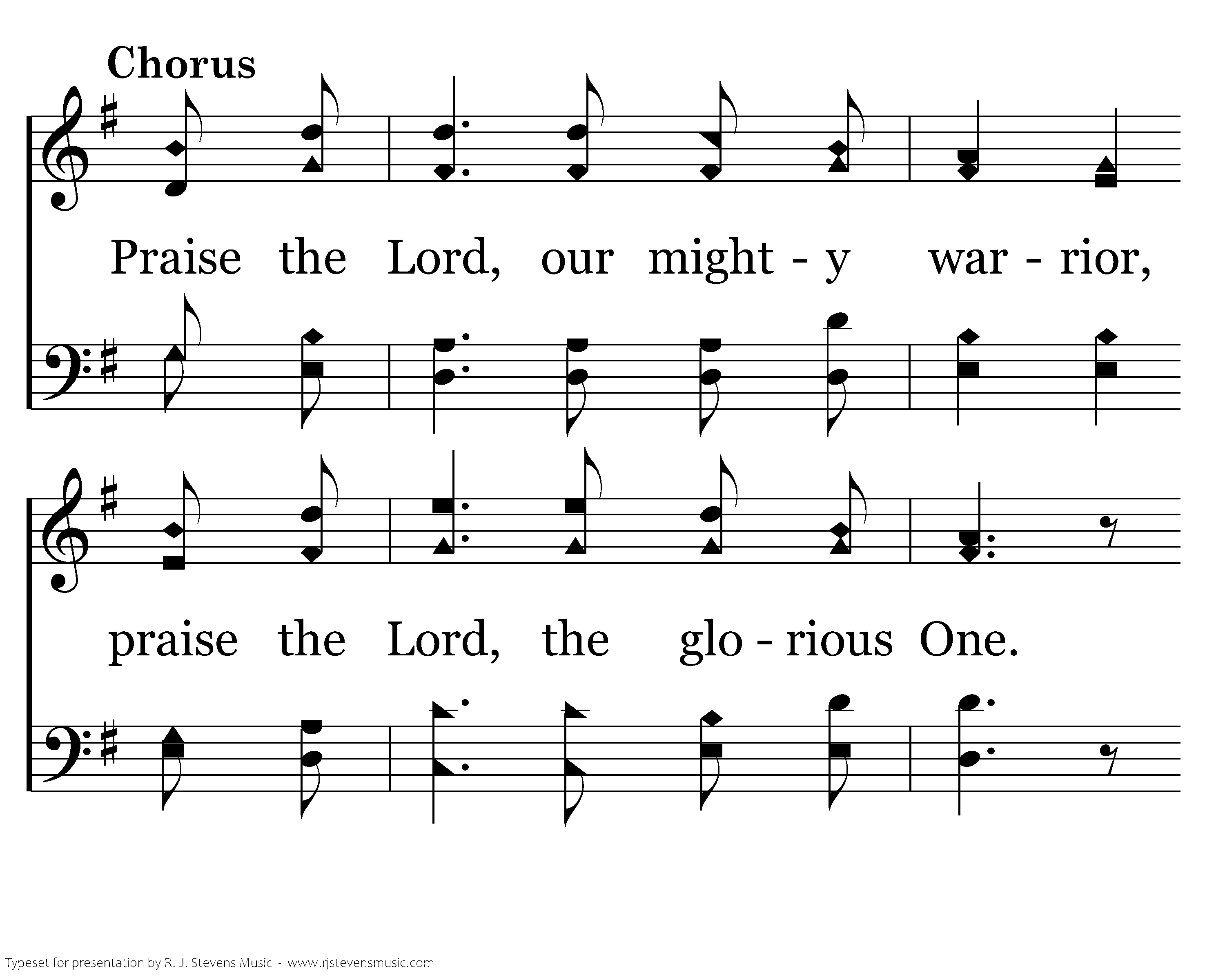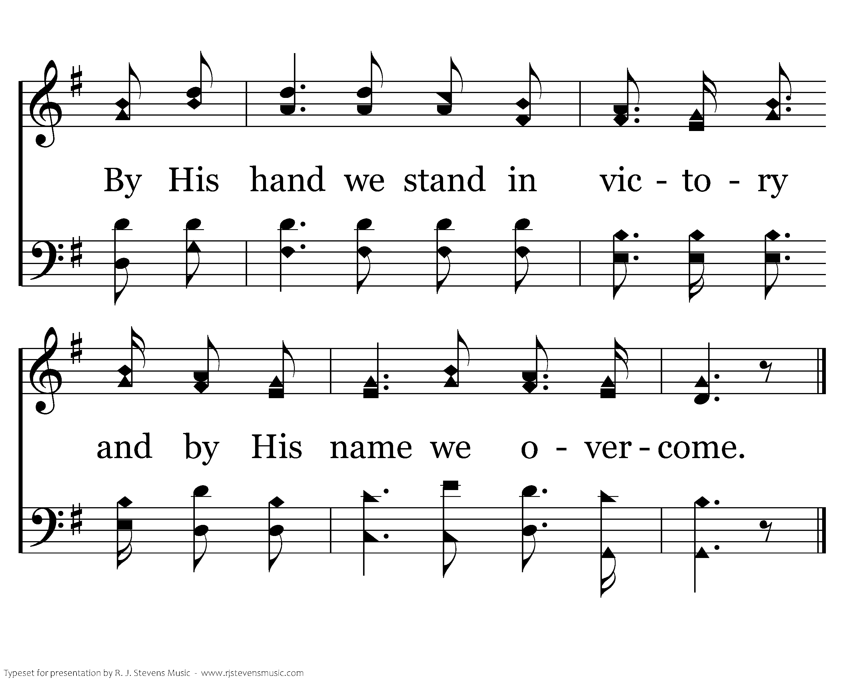 Praise the Lord, our mighty warrior, praise the Lord, the glorious One. By His hand we stand in victory and by His name we overcome.