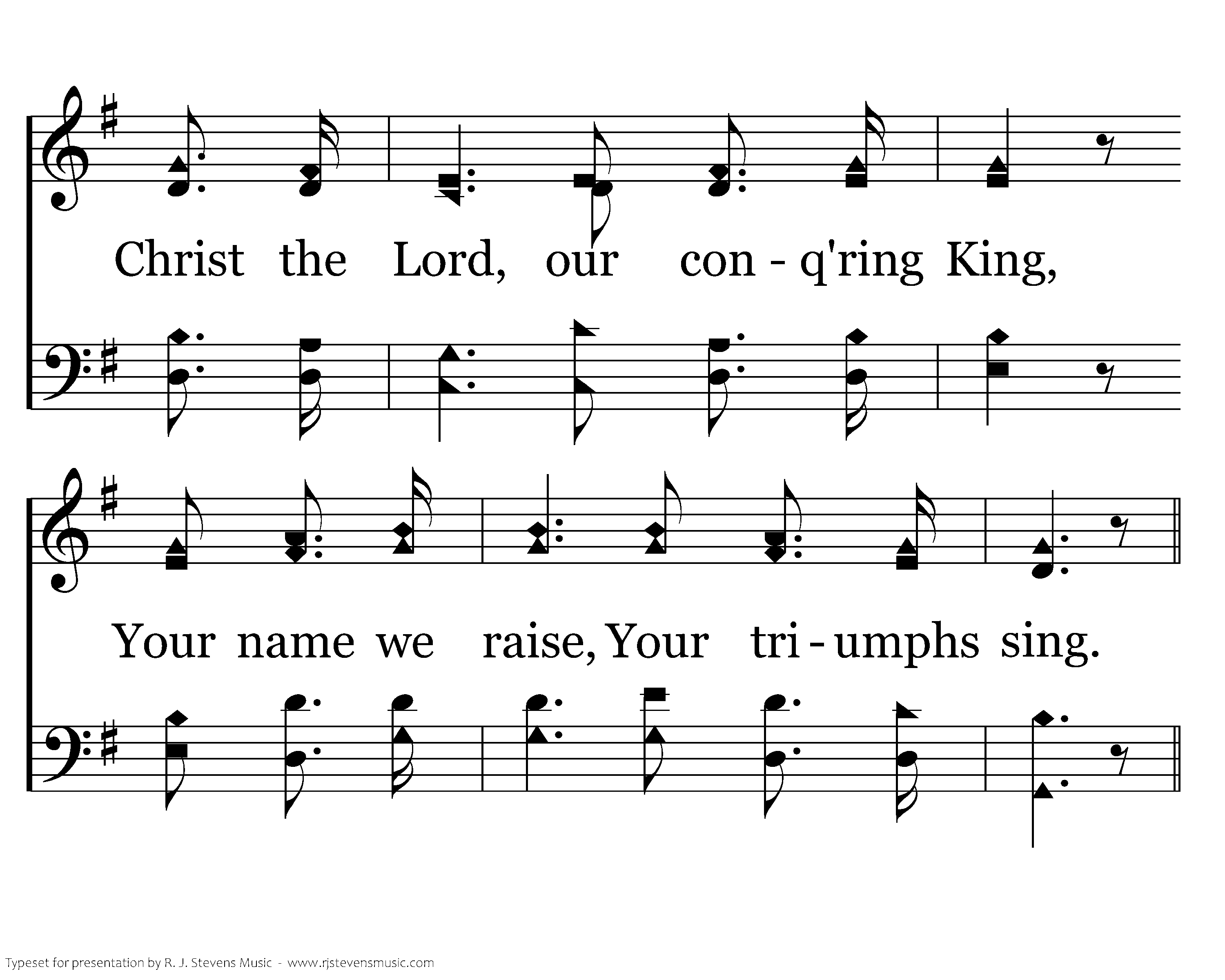 O the Lord, our strength and song, Highest praise to Him belongs; Christ the Lord, our conq'ring King, Your name we raise, Your triumphs sing.