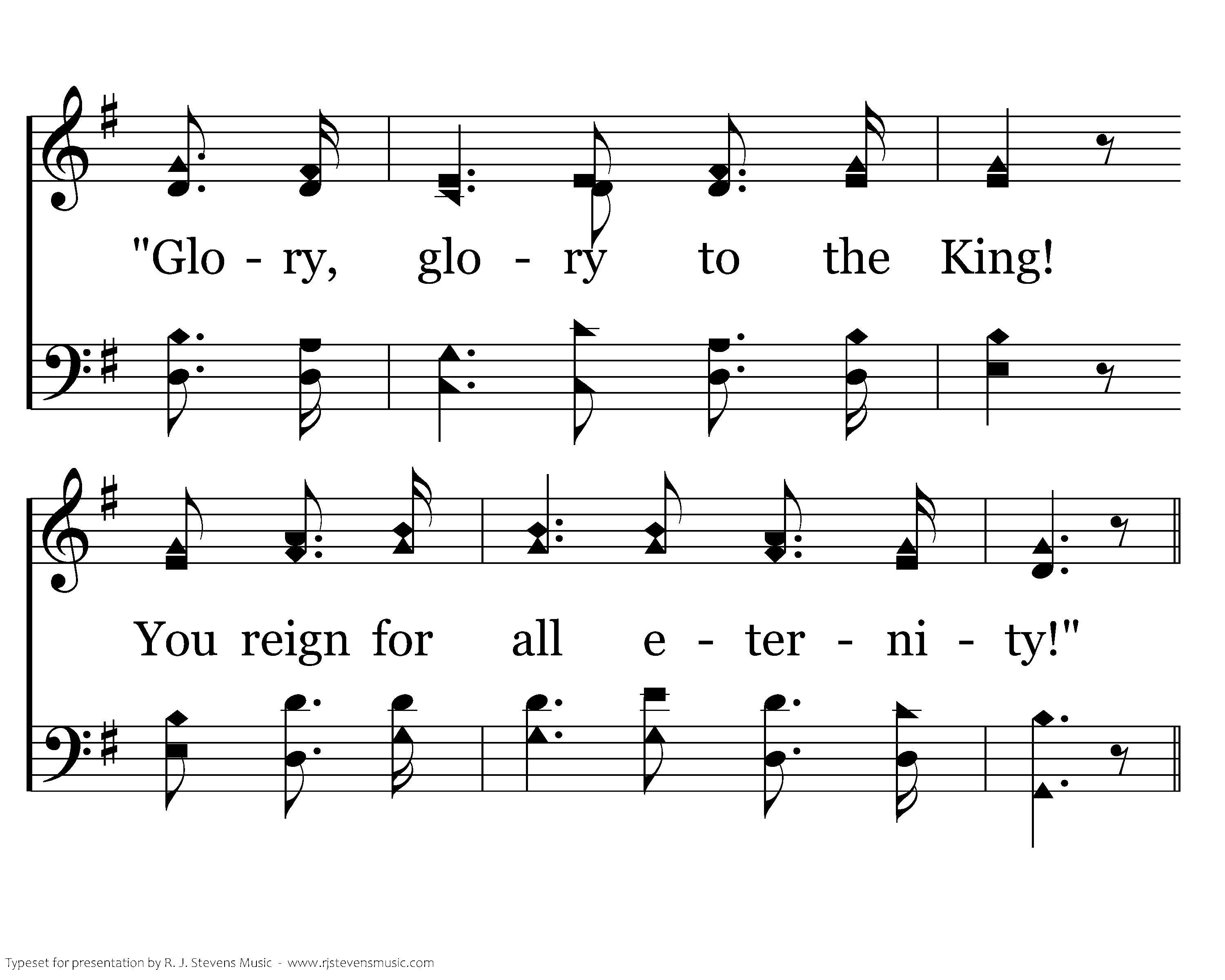 All the saints and angels bow. Hosts of heav'n are crying out, "Glory, glory to the King! You reign for all eternity!
