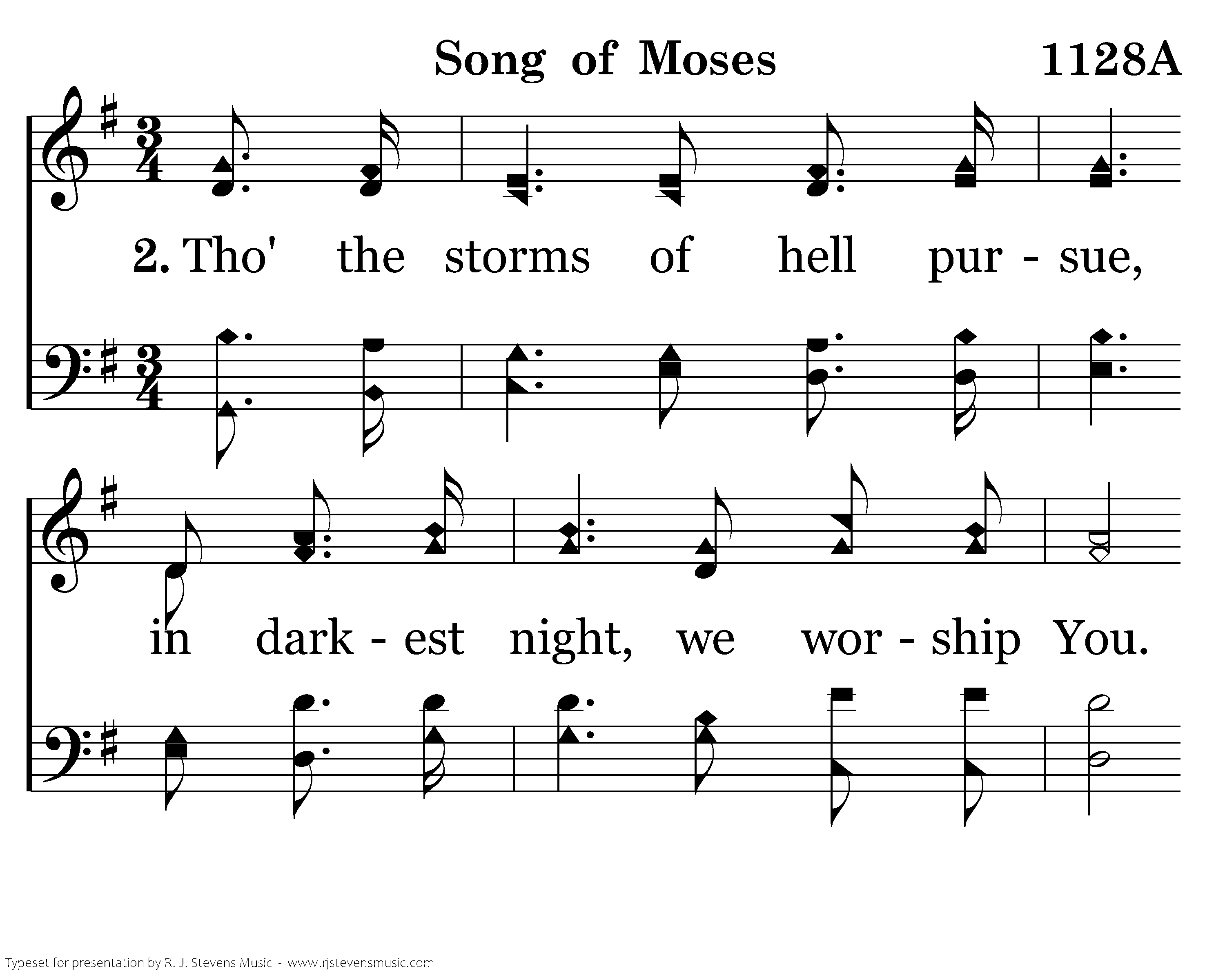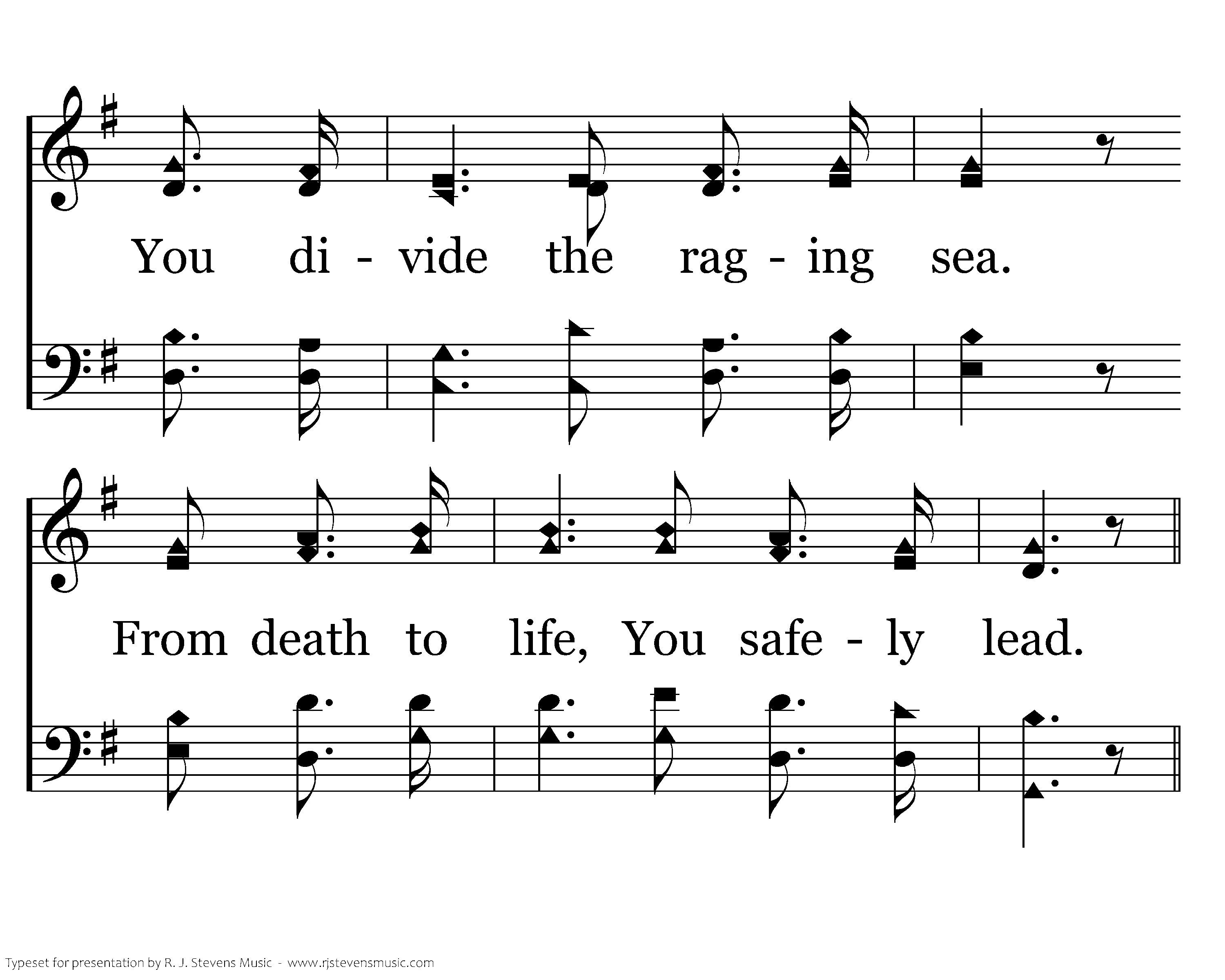 Tho' the storms of hell pursue, in darkest night, we worship You. You divide the raging sea. From death to life, You safely lead.
