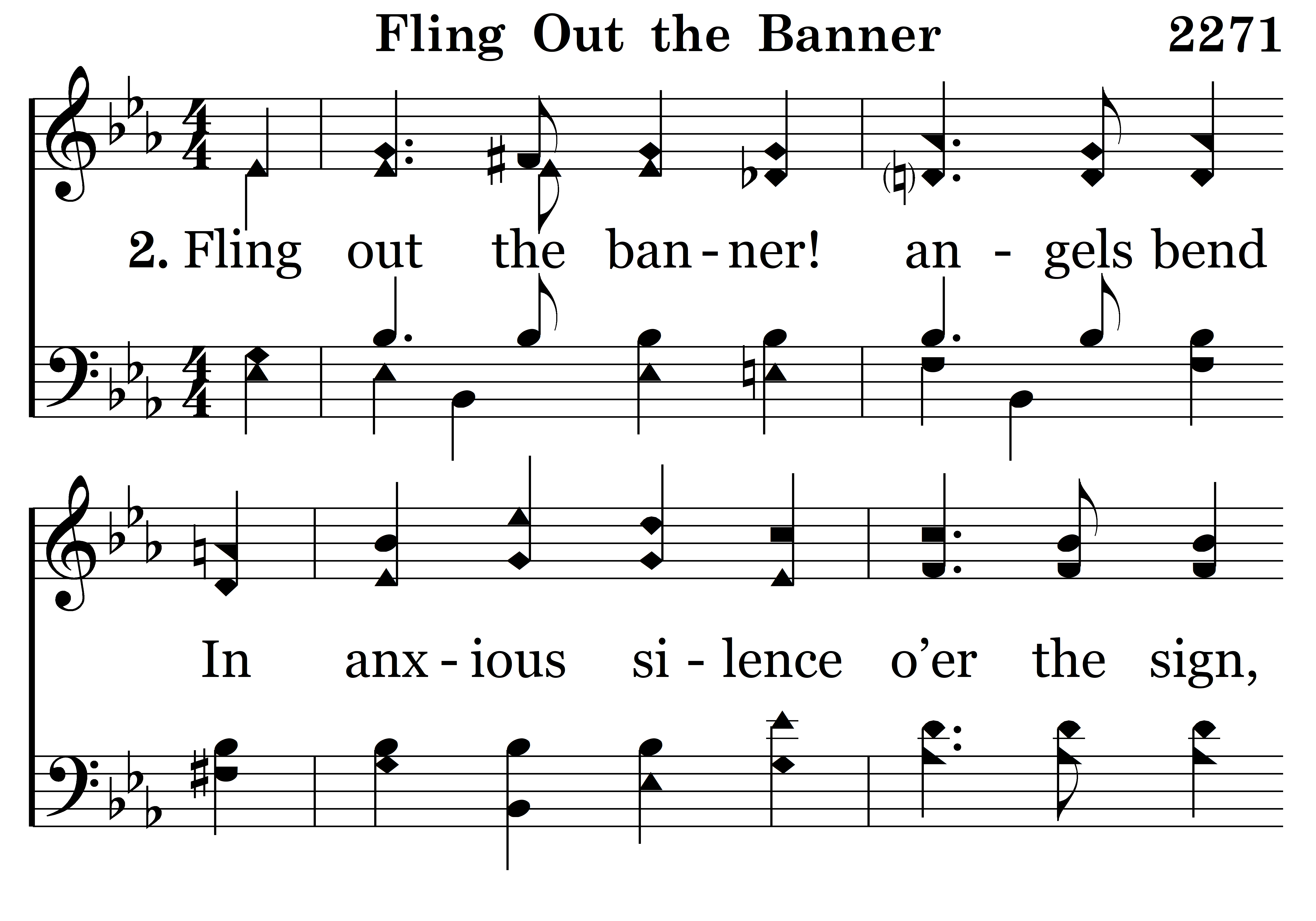 Fling out the banner! angels bend In anxious silence o’er the sign, And vainly seek to comprehend