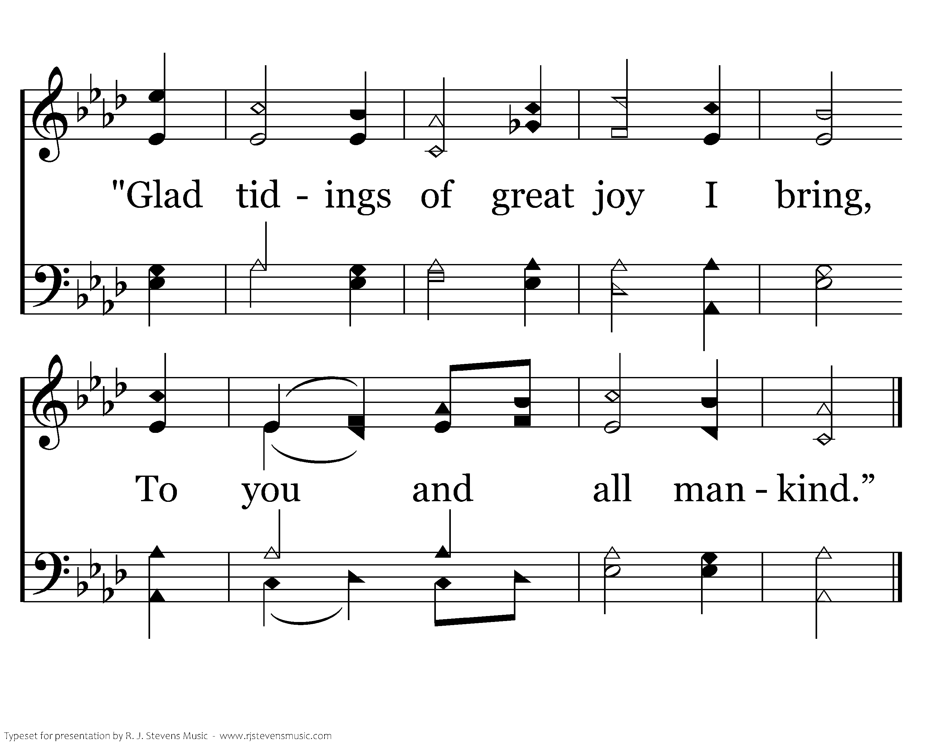 "Fear not!" said he, for mighty dread Had seized their troubled mind; "Glad tidings of great joy I bring, To you and all mankind.”
