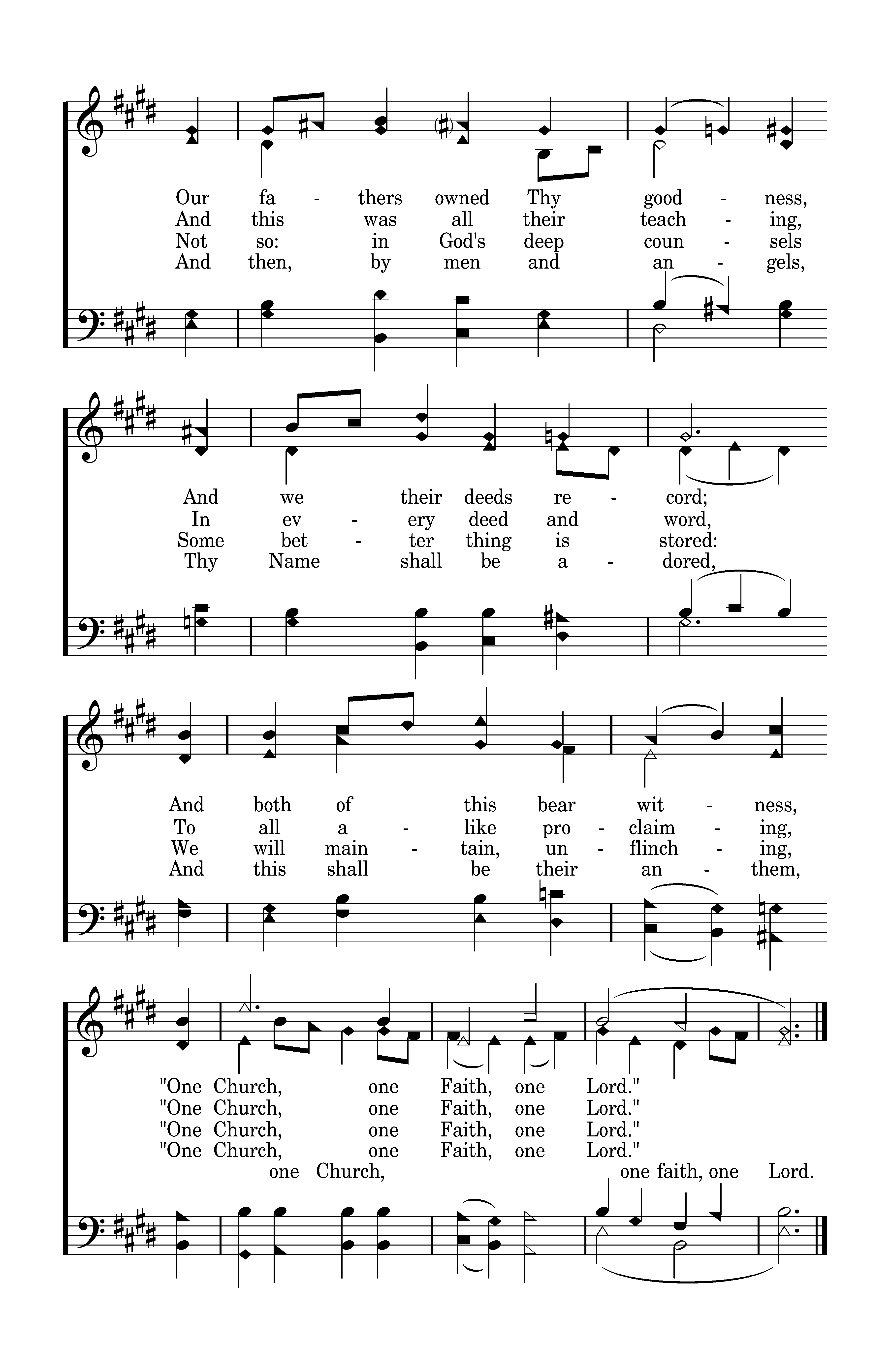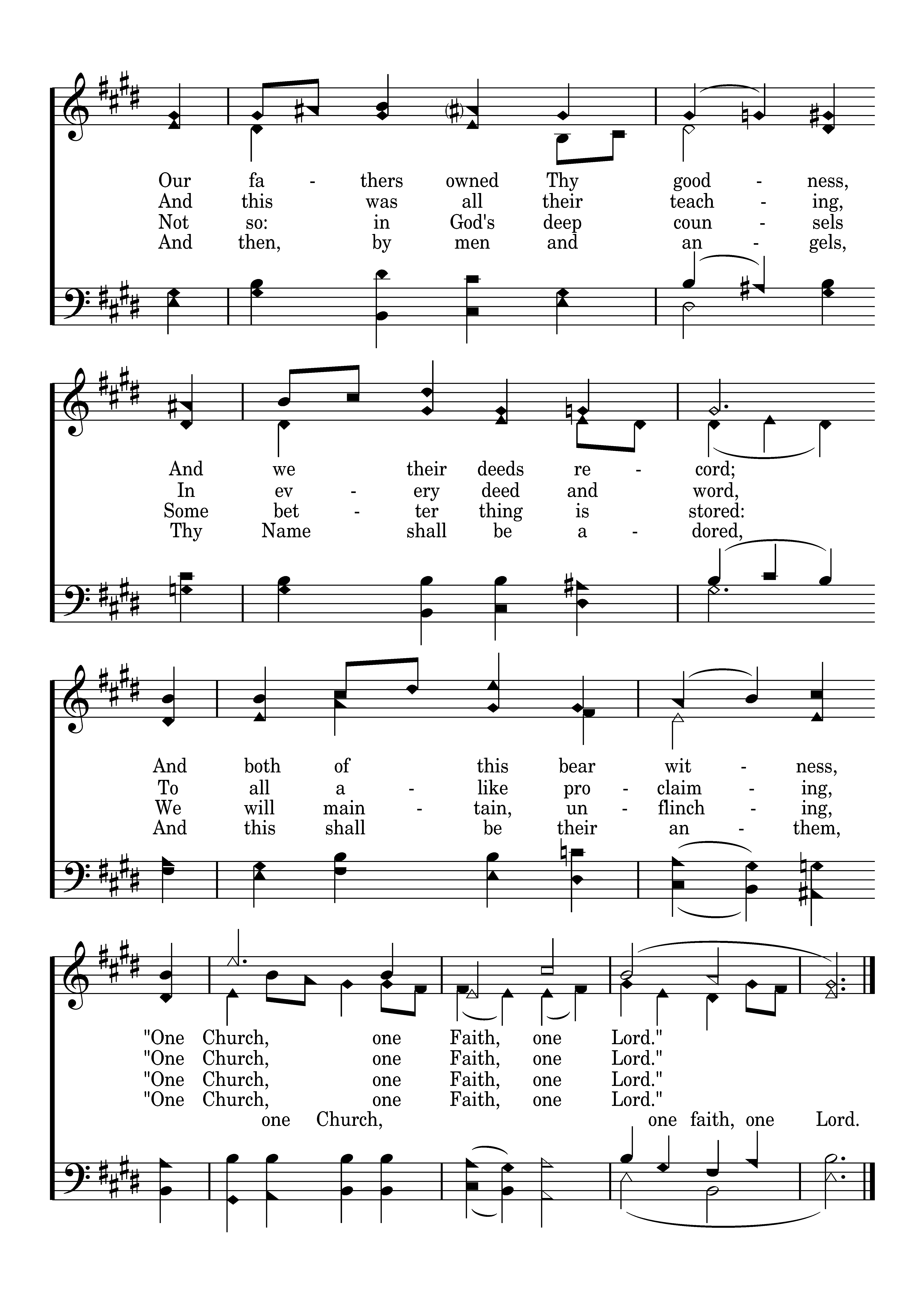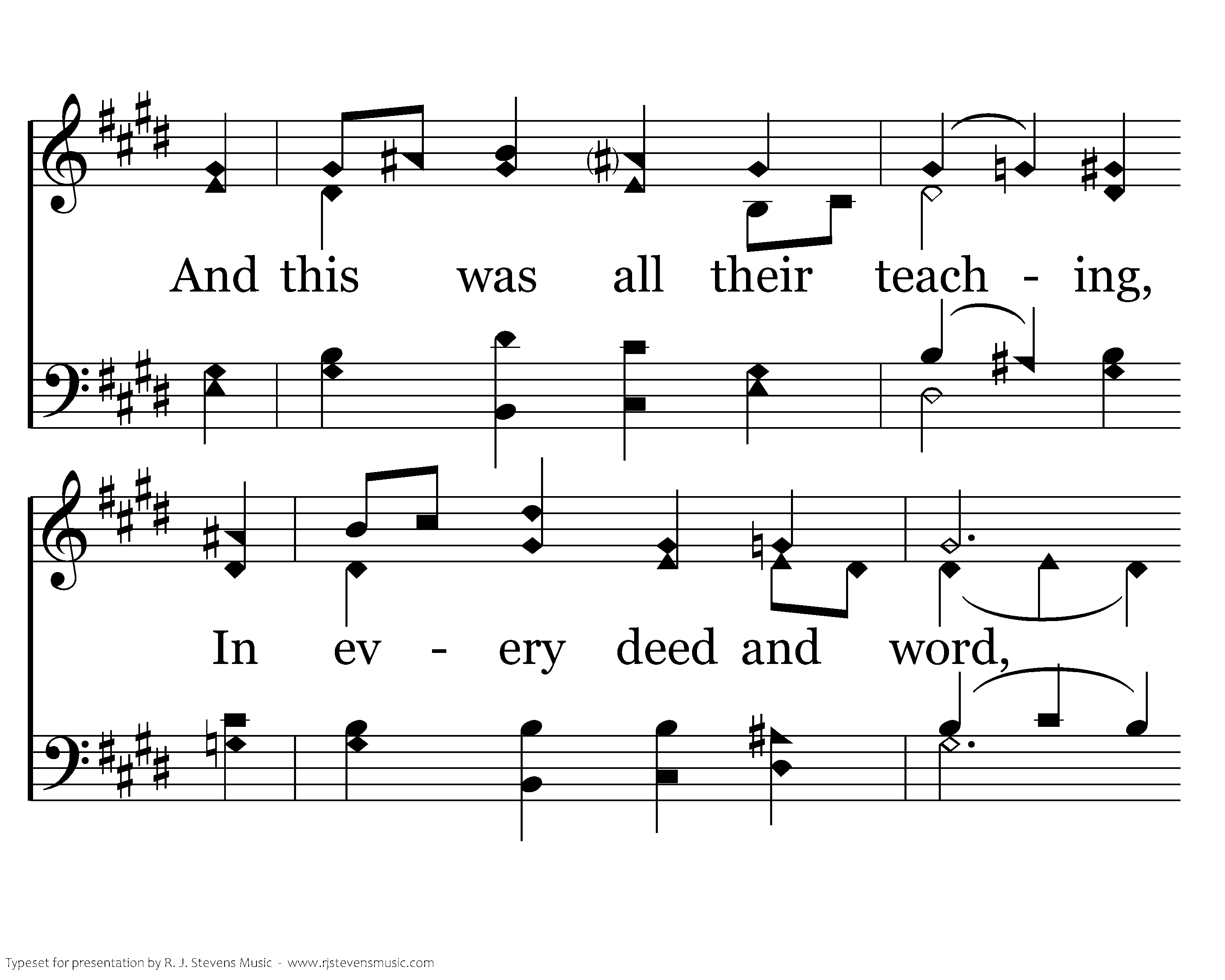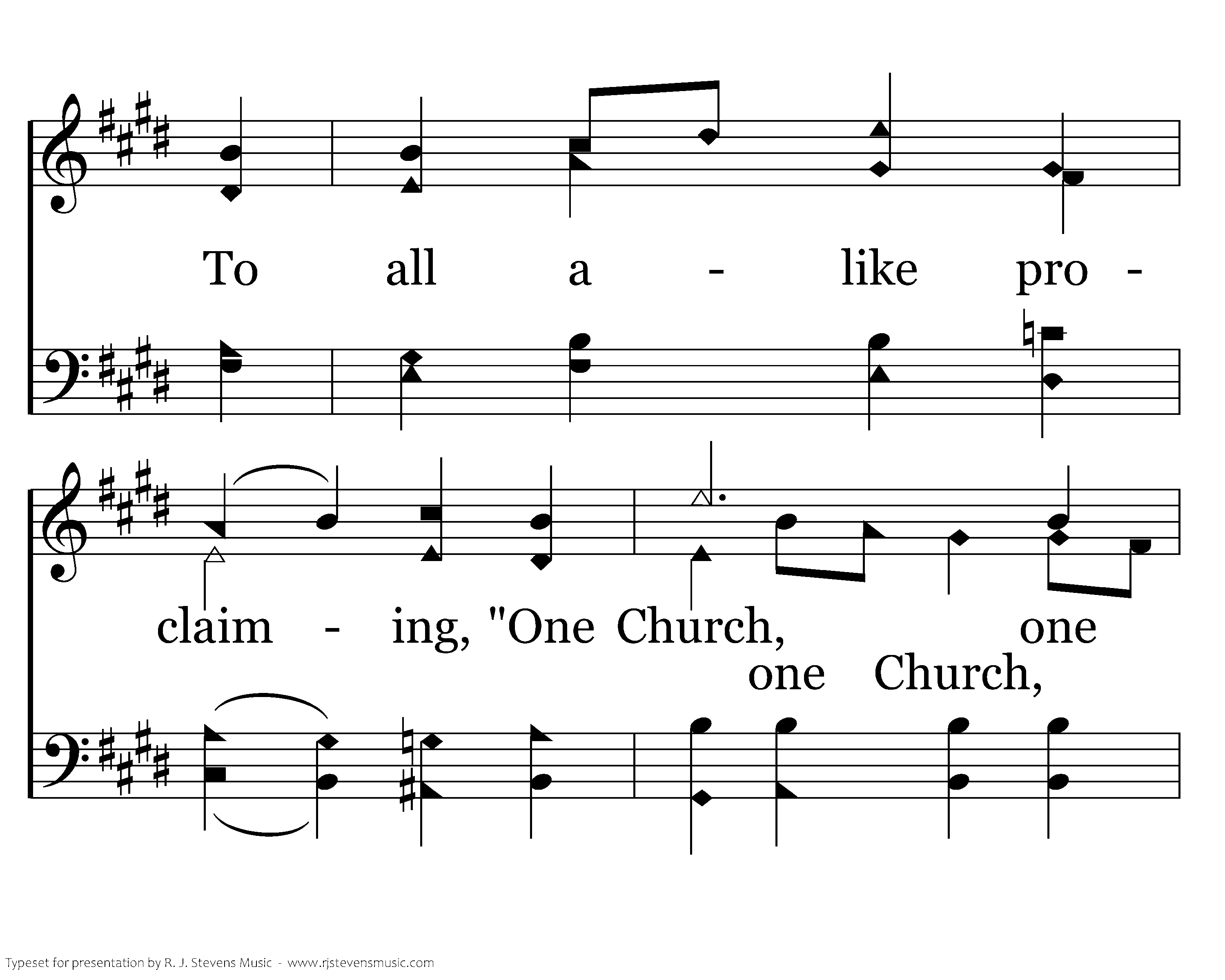 And this was all their teaching, In every deed and word, To all alike proclaiming, "One Church, one Faith, one Lord."