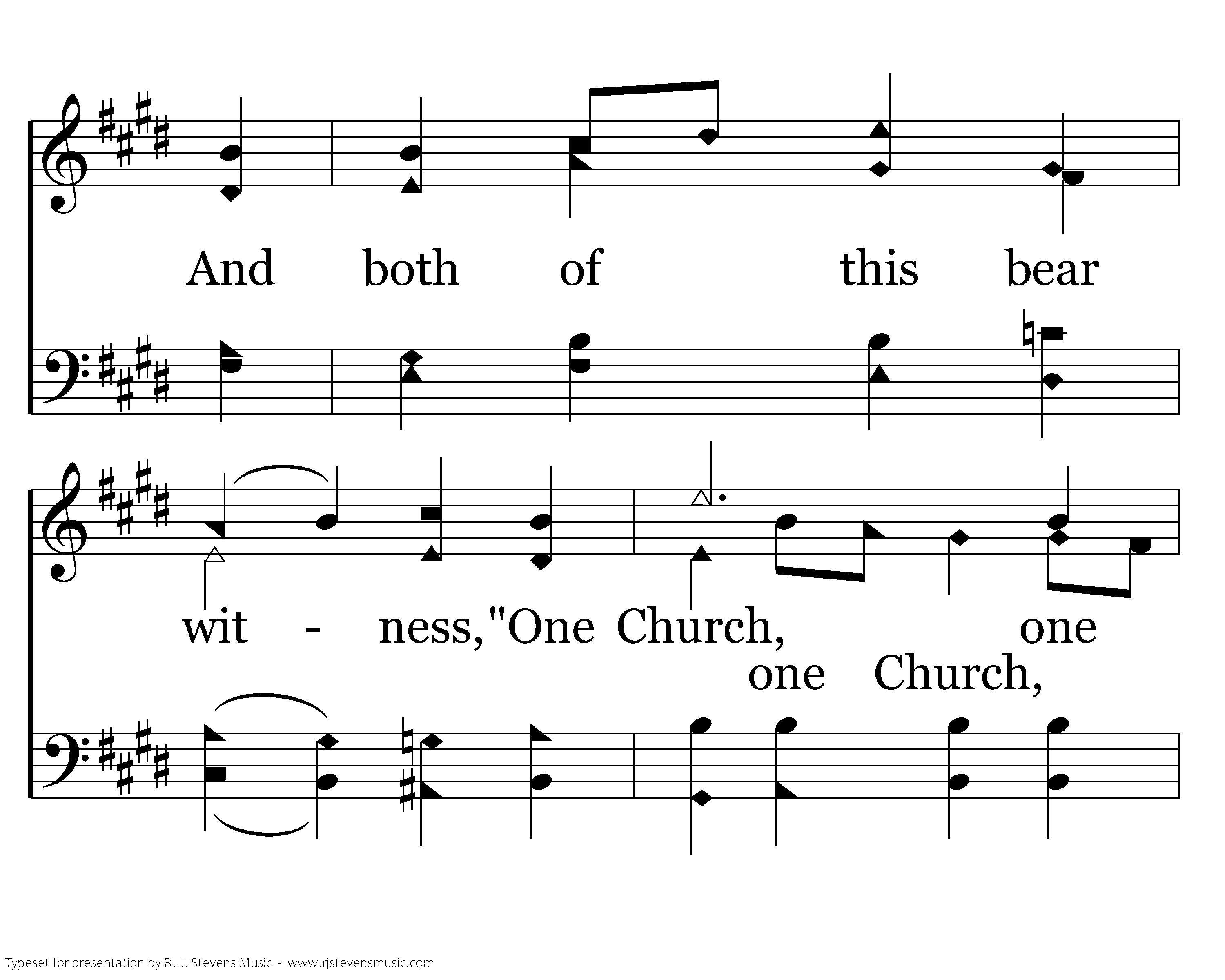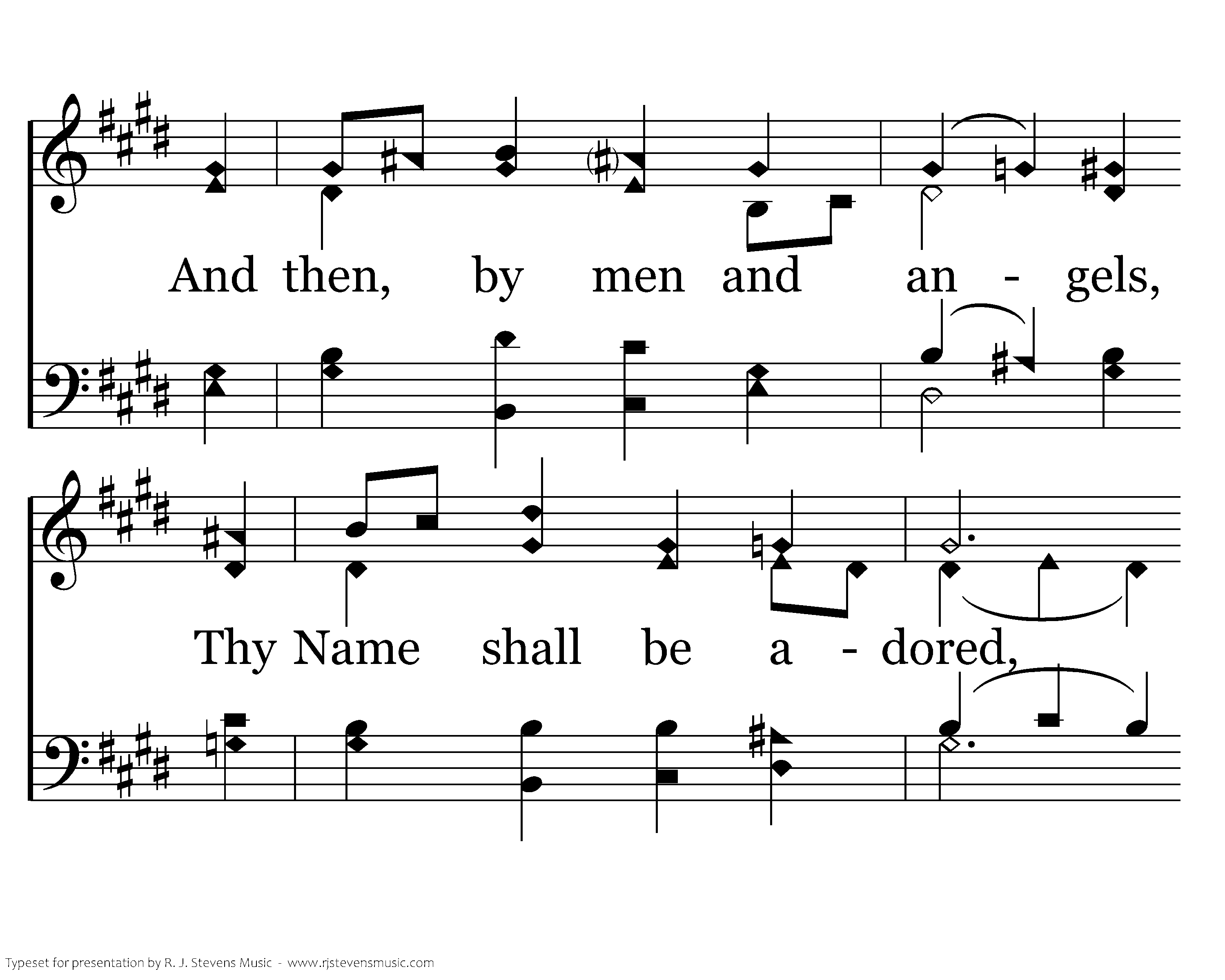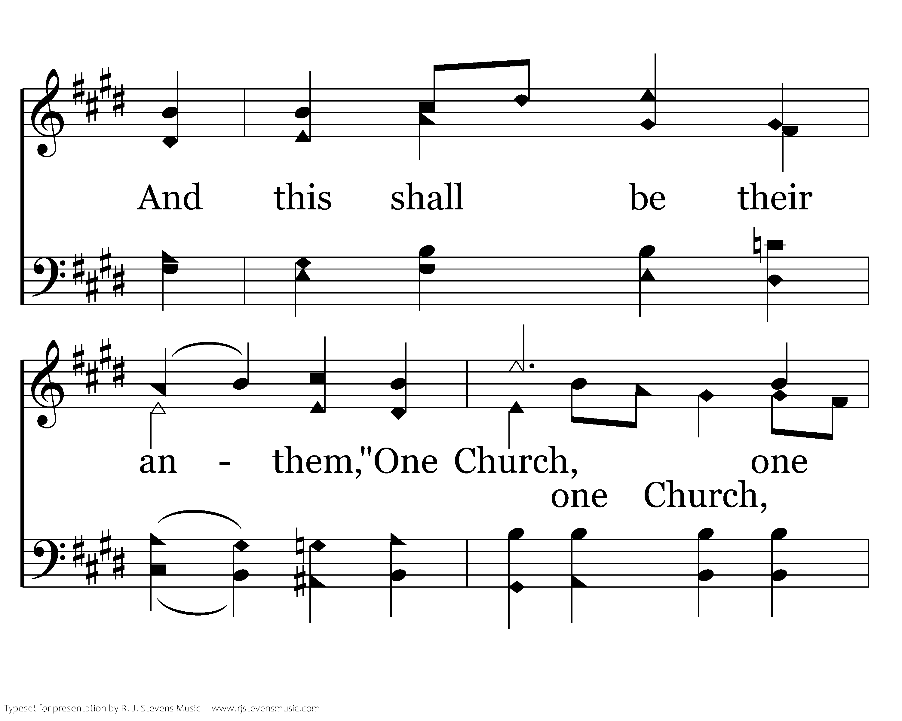 And then, by men and angels, Thy Name shall be adored, And this shall be their anthem, "One Church, one Faith, one Lord."