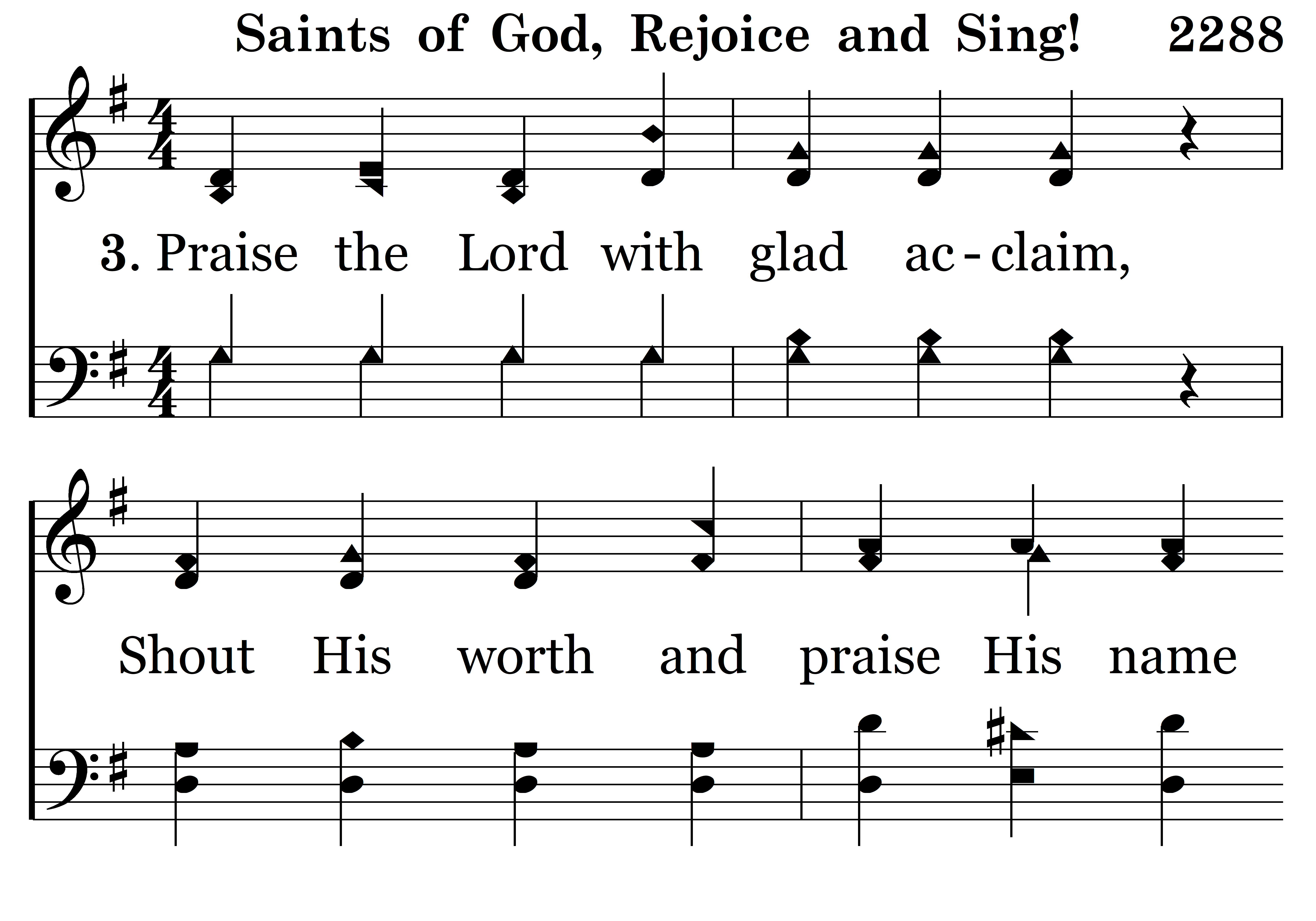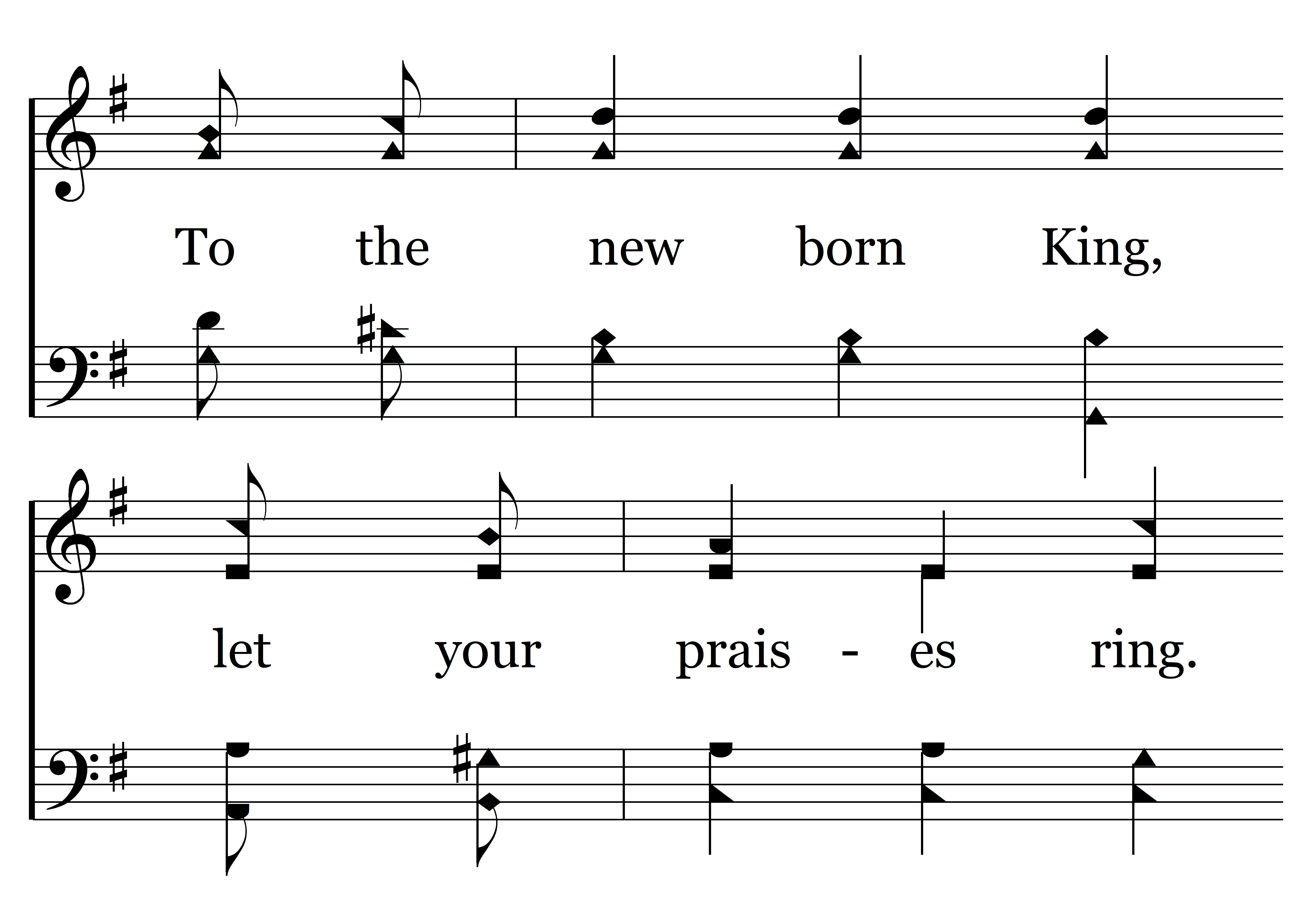 Praise the Lord with glad acclaim, Shout His worth and praise His name To the new born King, let your praises ring. Rejoice, rejoice and sing.