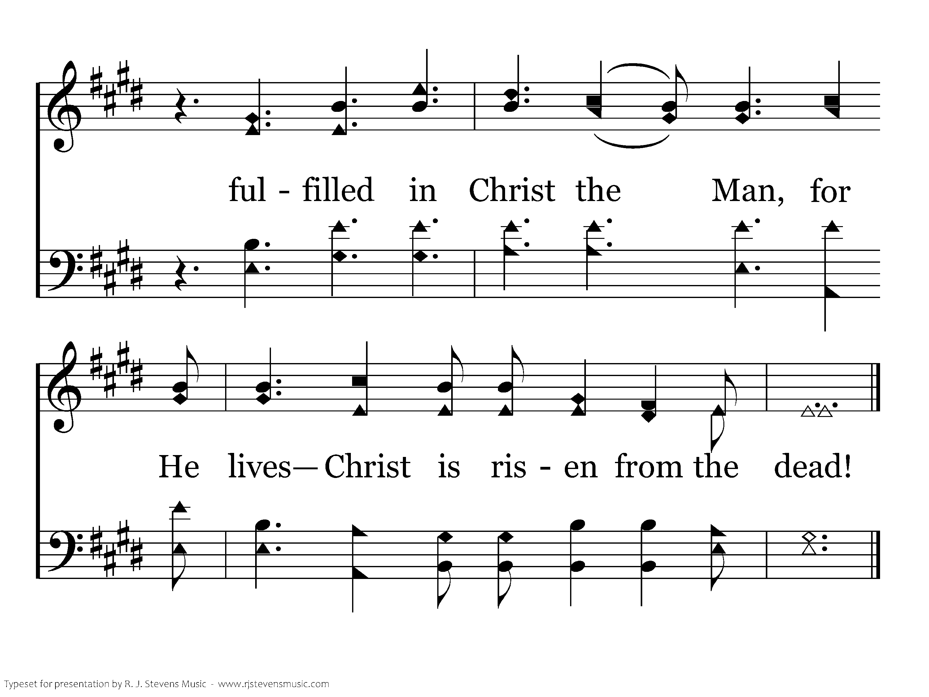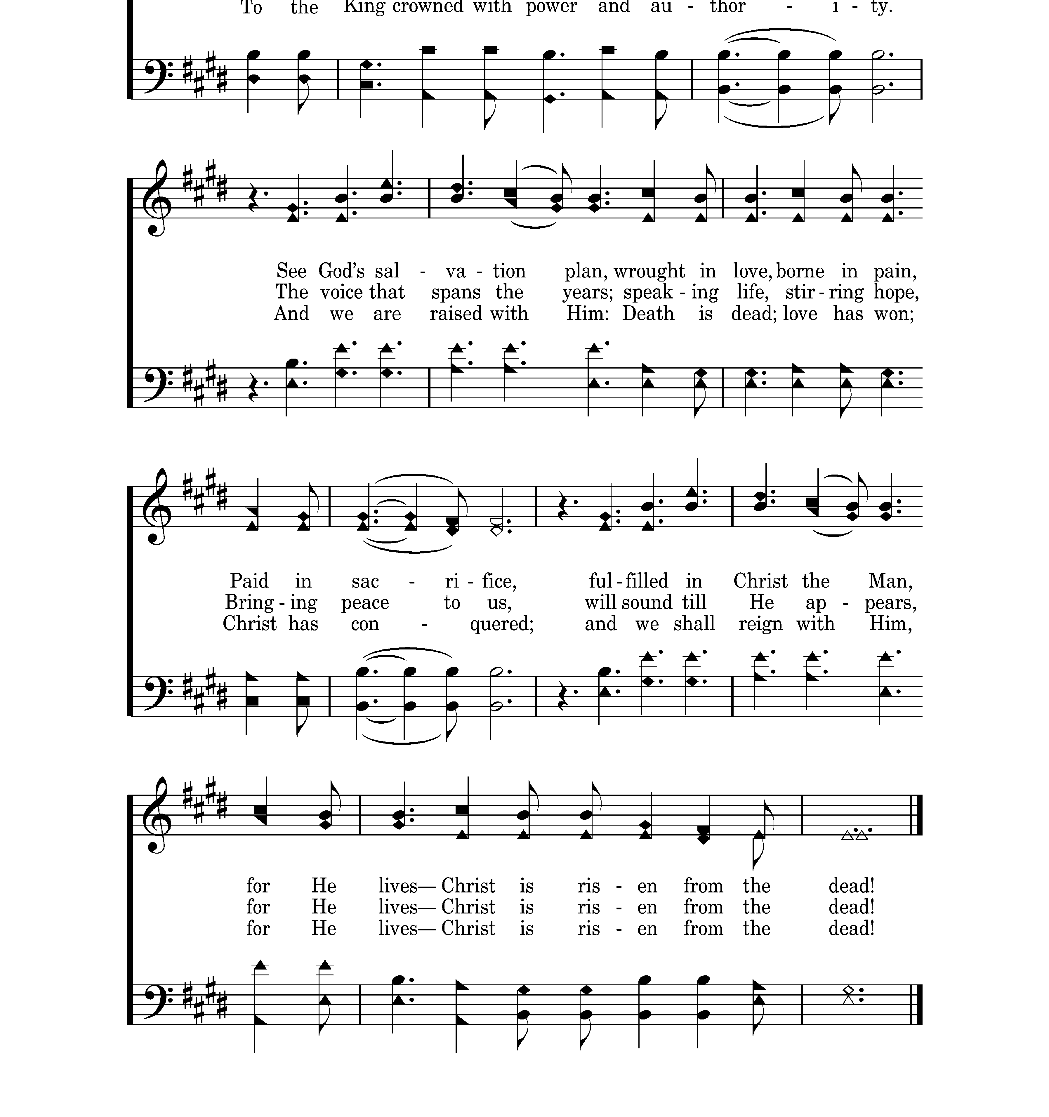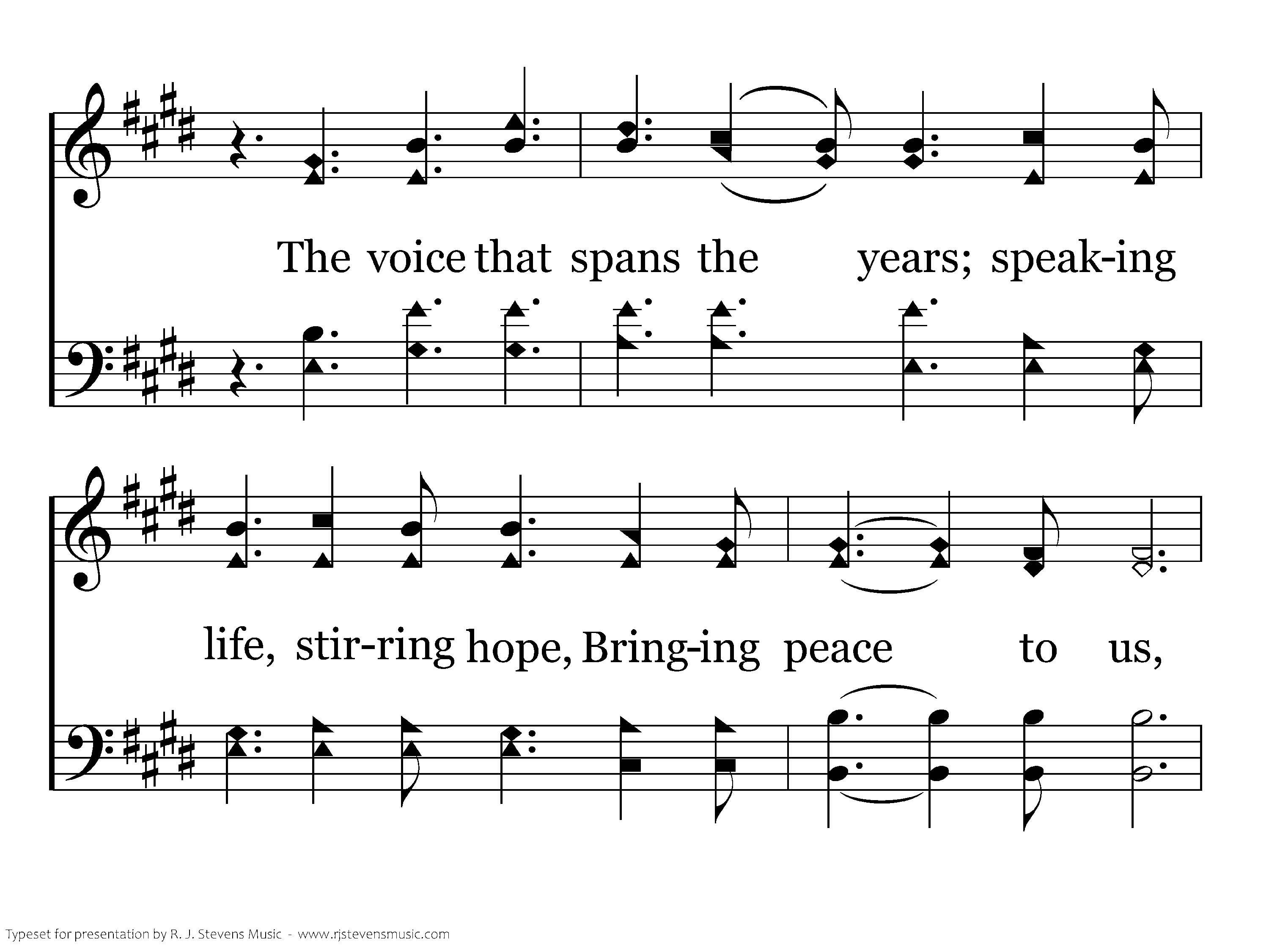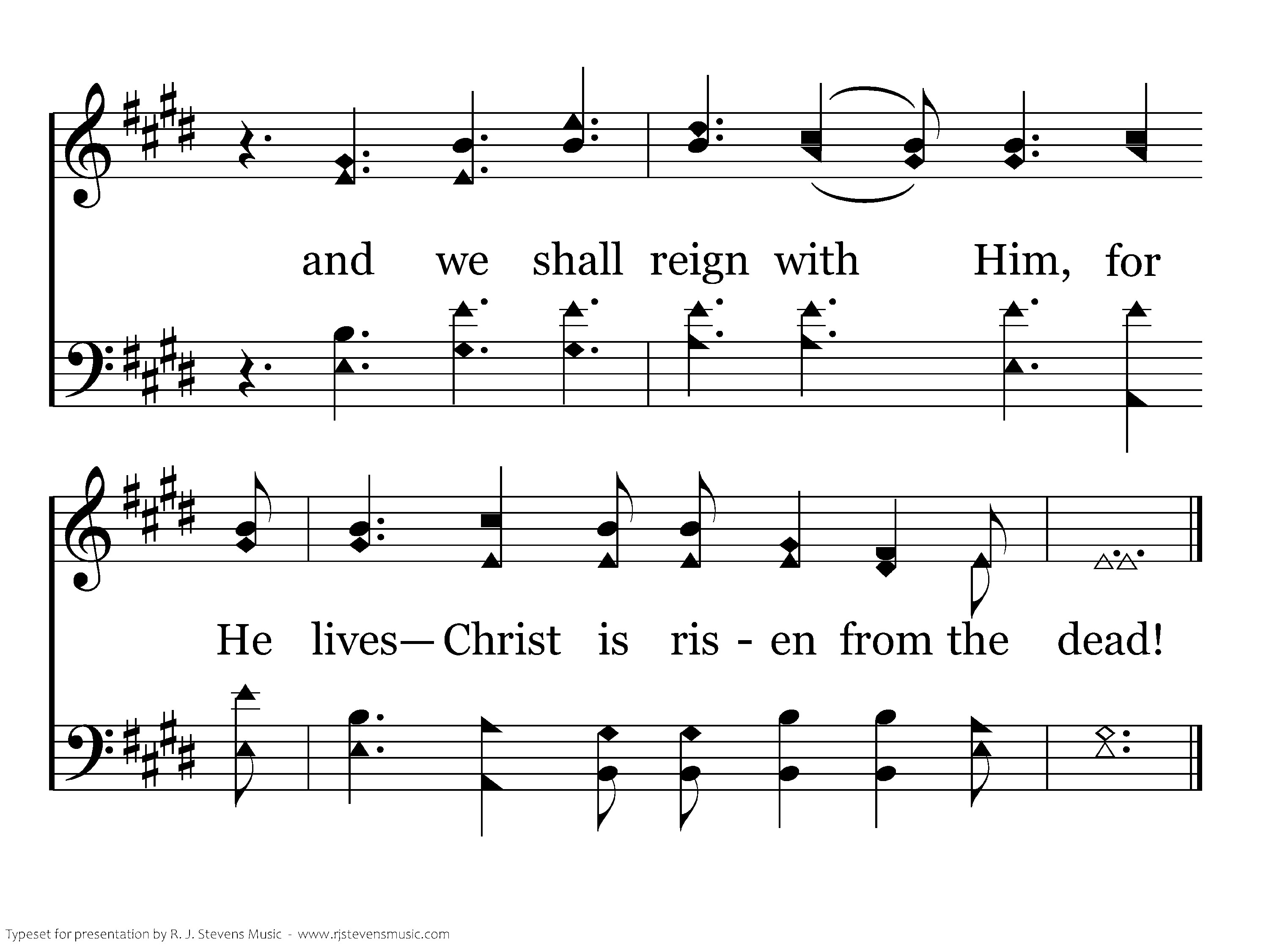 See Mary weeping, “Where is He laid?” As in sorrow she turns from the empty tomb. Hears a voice speaking, calling her name; It’s the Master, the Lord, raised to life again! The voice that spans the years; speaking life, stirring hope, Bringing peace to us, will sound till He appears, for He lives— Christ is risen from the dead!